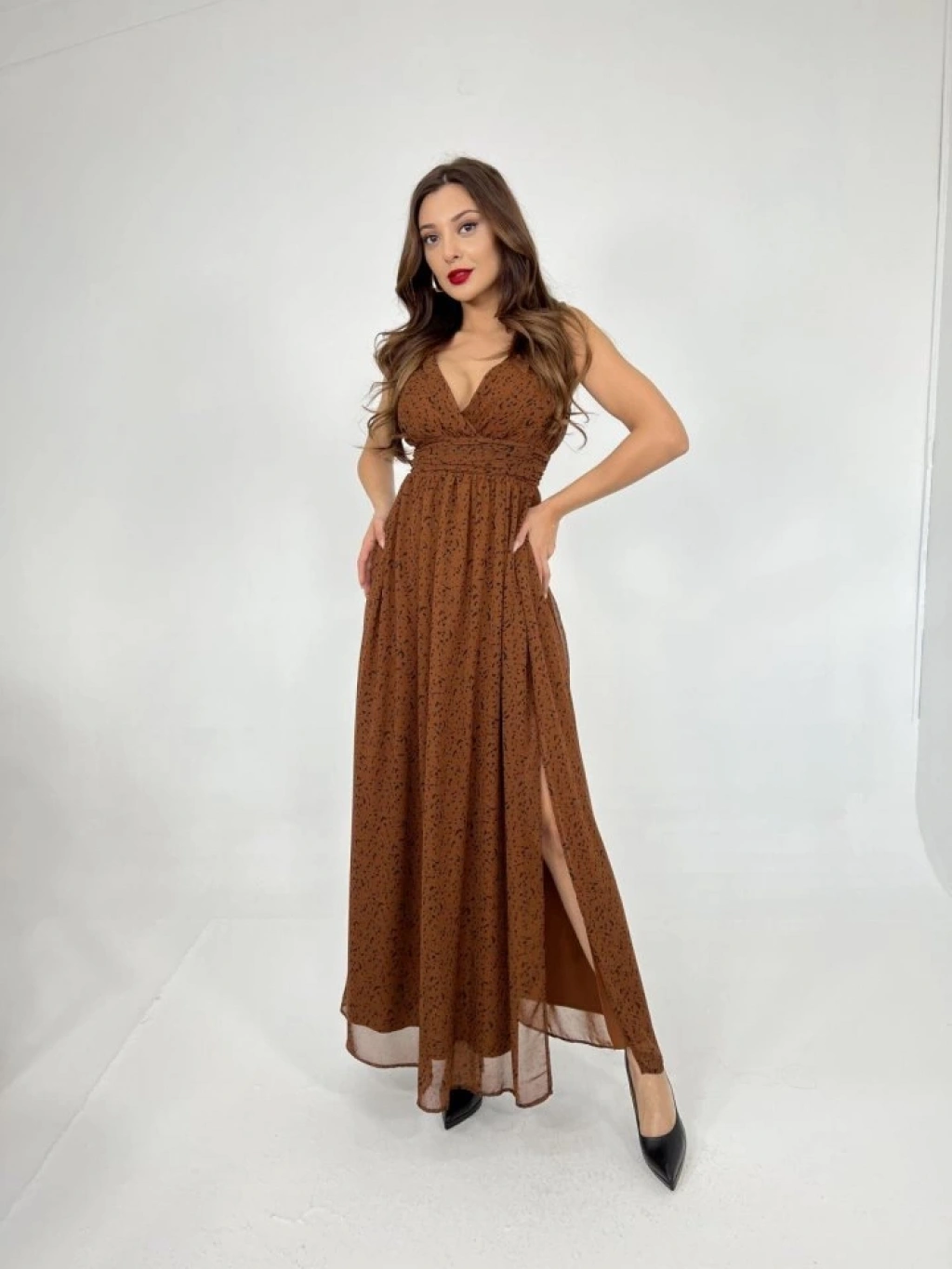 Modelin Ölçüleri: Boy:165, Kg:55, Göğüs:90, Bel:72, Kalça: 100