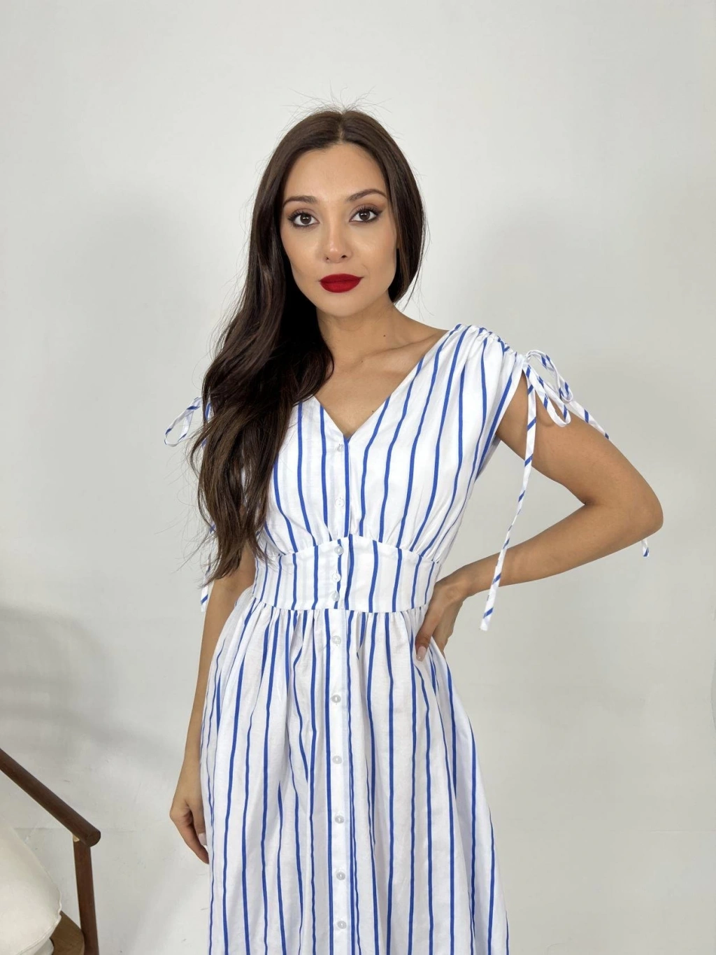 Modelin Ölçüleri: Boy:165, Kg:55, Göğüs:90, Bel:72, Kalça: 100