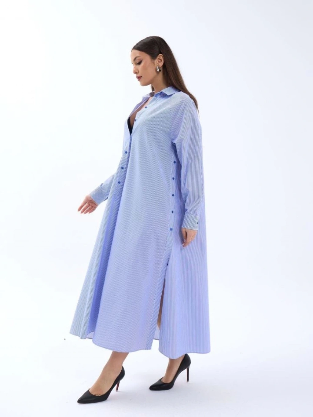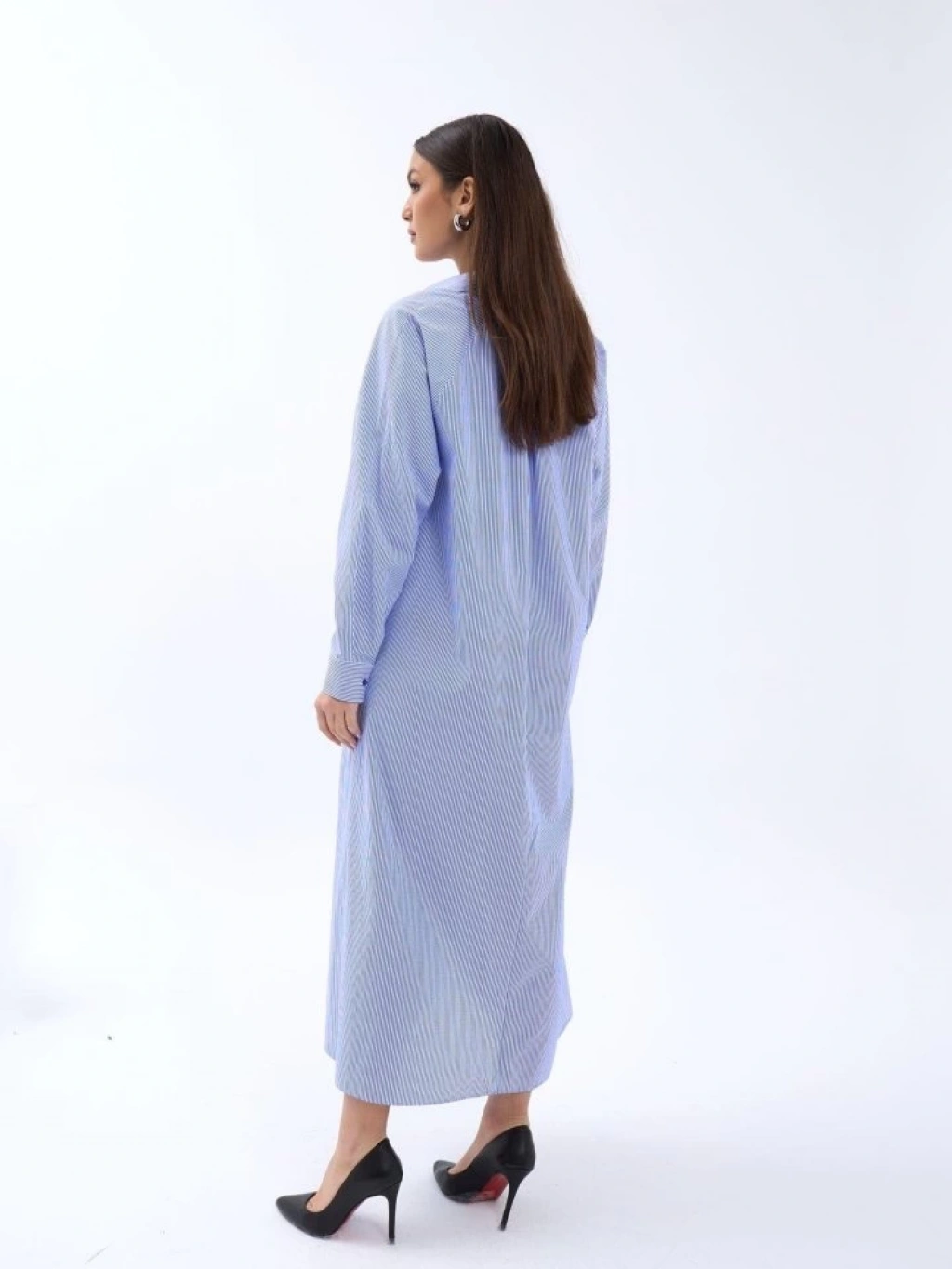 5857 ELBİSE-MAVİ BEYAZ ÇİZGİLİ