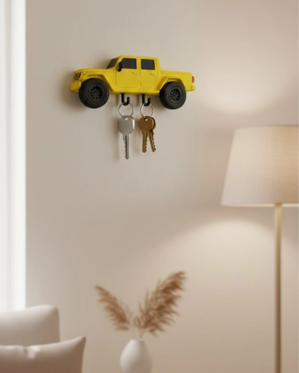 Araba figürlü anahtarlık, günlük hayatta sık kullanılan anahtarları düzenli tutmak için pratik bir çözümdür. Duvara sabitlenerek kullanılan yapısı, anahtarların kaybolmasını önler ve kolay erişim sağlar. Modern ve eğlenceli tasarımıyla ev dekorasyonuna hareket katar. Hem kendiniz için hem de hediye alternatifi olarak tercih edilebilecek kullanışlı bir üründür.