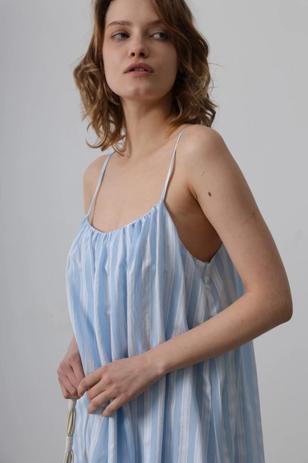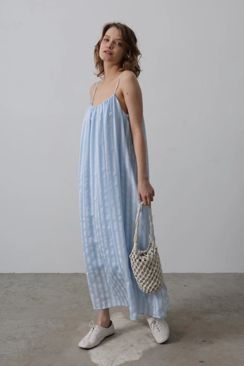 Askılı Çizgi Desen Elbise - Bebe Mavisi