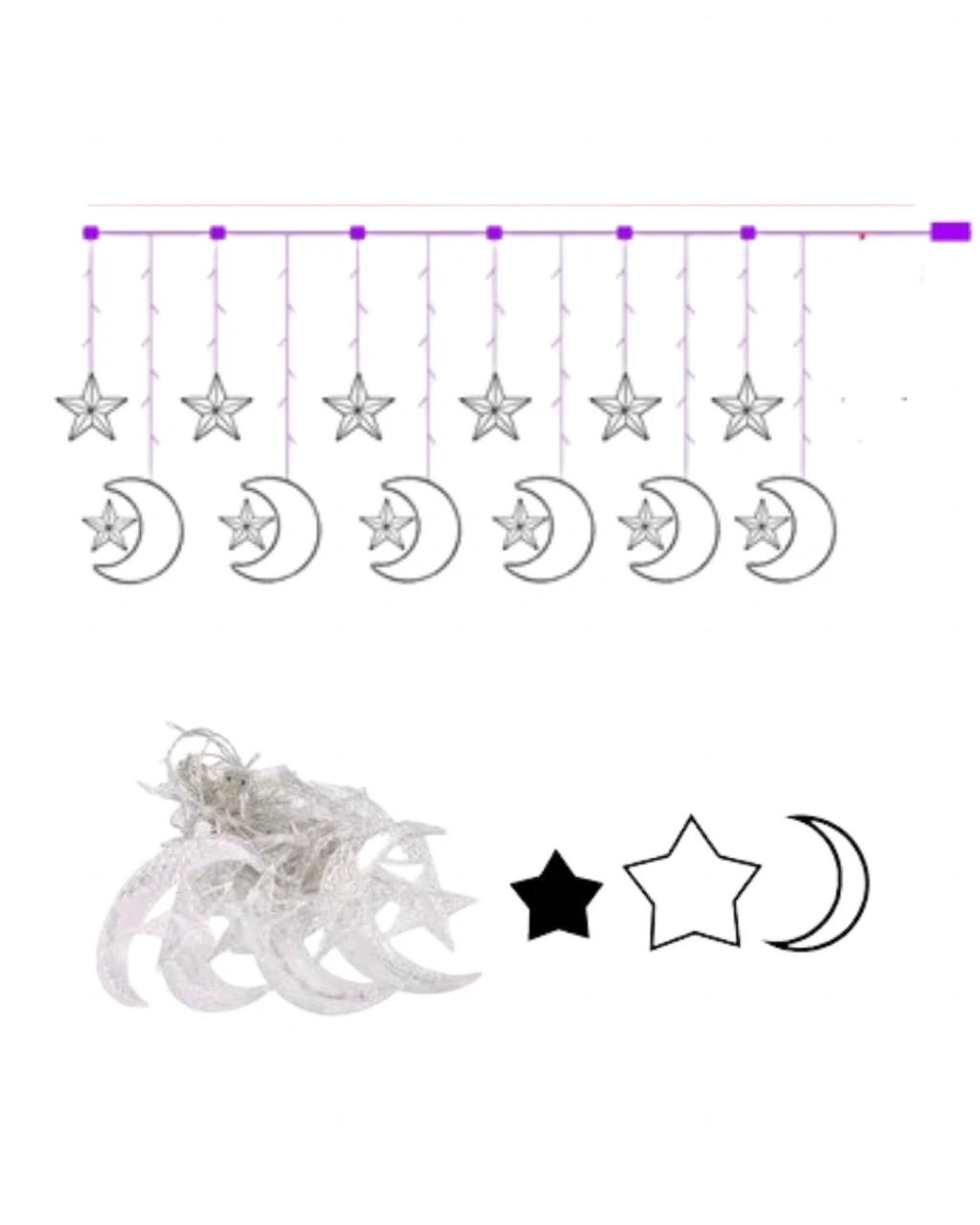 Hilal ve yıldız figürleri estetik bir bütünlük içinde tasarlanmıştır. Mekâna yerleştirildiğinde hem dekoratif hem işlevsel bir aydınlatma çözümü sunar.İki aydınlatma modu ile kullanım esnekliği sağlar. Sabit mod huzurlu bir ortam yaratırken, yanıp sönme modu daha canlı bir atmosfer oluşturur.Yüksek kaliteli malzeme yapısı ve güvenli kablo tasarımı sayesinde gönül rahatlığıyla kullanılabilir. İç mekân dekorasyonunda güçlü bir tamamlayıcı üründür.
