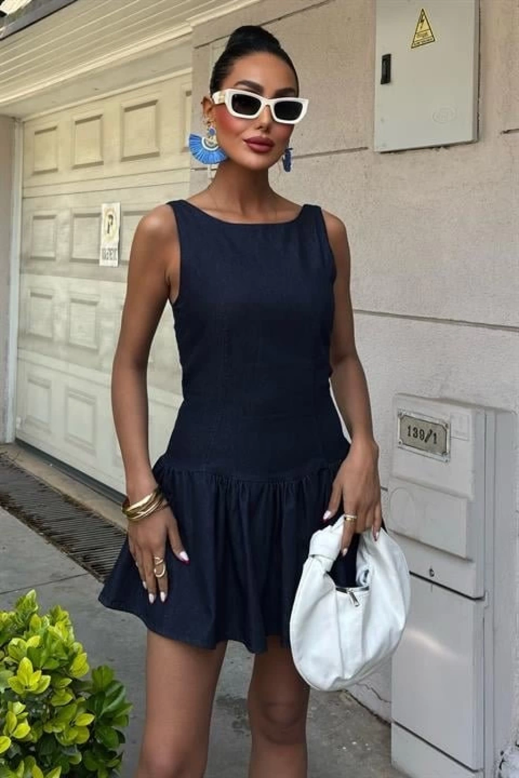 Balon Etekli Tensel Mini Elbise 2887