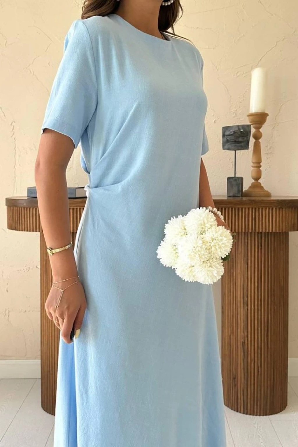 Bebe Mavi Pileli Bisiklet Yaka Elbise