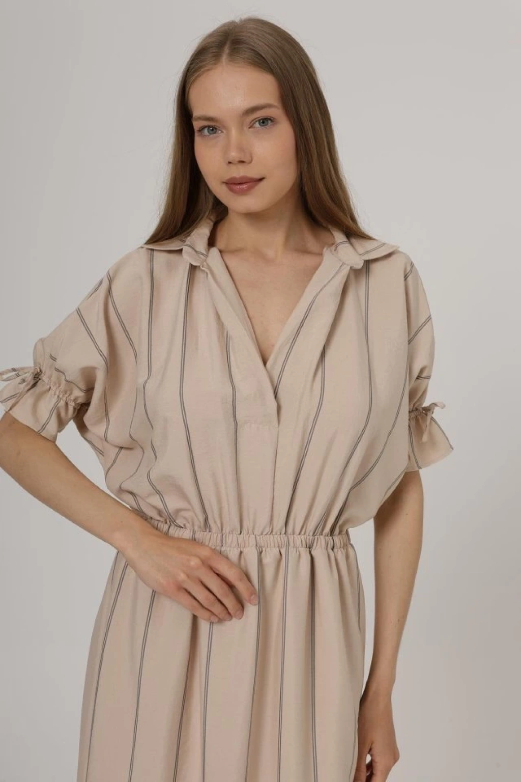 Beli Lastikli Elbise - Taş