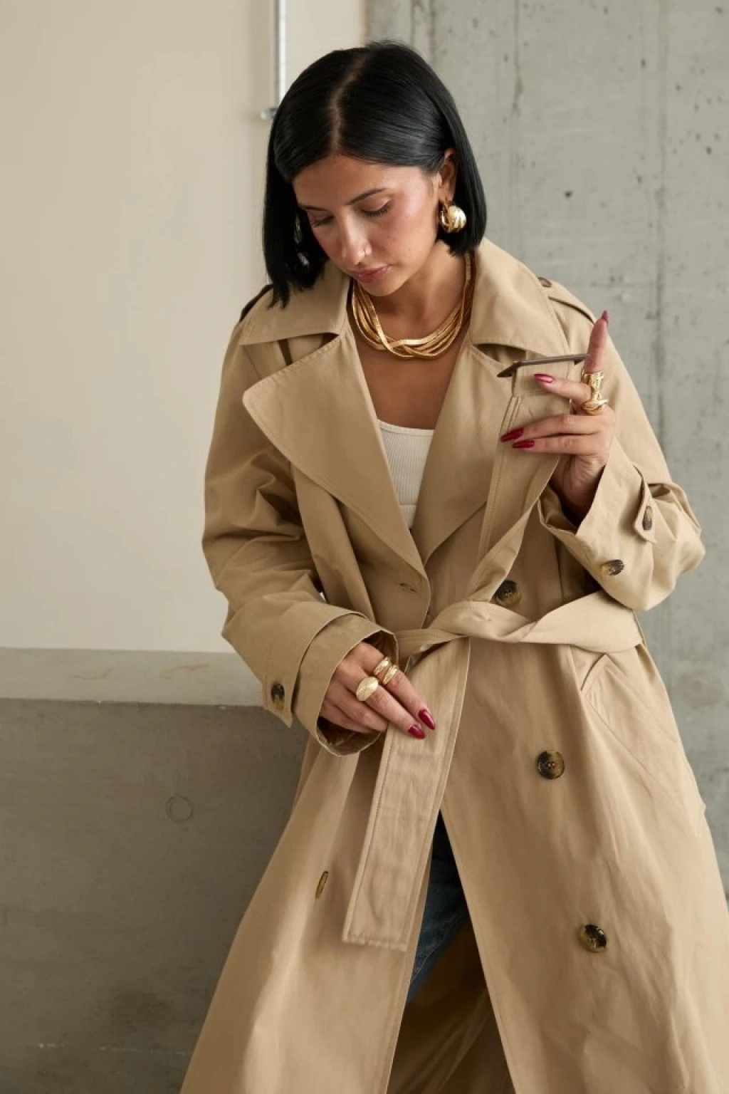 Camel Uzun Kemerli Trençkot