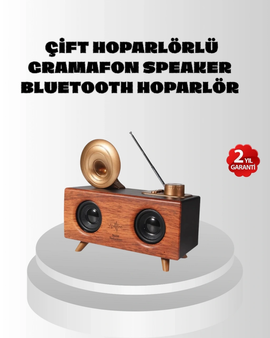 Global Çift Hoparlörlü Retro Gramafon Bluetooth Speaker, nostalji ve modern teknolojiyi bir arada sunan özel bir tasarıma sahiptir. Estetik gramafon görünümlü yapısı, yaşam alanlarına dekoratif bir şıklık katarken, stereo çift hoparlörü ile güçlü ve net bir ses deneyimi sağlar. 90 dB ses çıkış gücü sayesinde müzikleri detaylı ve geniş bir frekans aralığında dinleyebilirsiniz. Derin baslar, temiz tizler ve dengeli orta tonlar ile 3D ses teknolojisi müzik keyfini üst seviyeye taşır.Bluetooth bağlantısı sayesinde kablosuz olarak cihazlarınıza kolayca bağlanabilir, 15 metreye kadar çekim mesafesiyle rahat kullanım elde edersiniz. Ayrıca Aux giriş, USB bellek ve SD kart desteği sayesinde müziklerinizi farklı kaynaklardan dinleyebilirsiniz. FM radyo özelliği ise favori kanallarınızı dilediğiniz zaman açıp dinlemenize olanak tanır. Bu çok yönlülük, hoparlörü hem ev hem iş yerlerinde fonksiyonel bir cihaz haline getirir.1800 mAh batarya kapasitesi, hoparlörün tam şarj olduktan sonra 5 ila 9 saat arasında kesintisiz çalışmasına olanak tanır. Şarj süresi yalnızca 1 saattir, bu da hızlı ve pratik bir kullanım sağlar. Hoparlör üzerinde yer alan medya kontrol tuşları sayesinde şarkılar arasında geçiş yapabilir, sesi kontrol edebilir ve cihazı kolaylıkla açıp kapatabilirsiniz.Kaliteli malzemelerden üretilen gövde yapısı uzun ömürlü kullanım sağlar. Gramafon formu ve retro detayları, bu hoparlörü yalnızca bir ses sistemi değil, aynı zamanda dekoratif bir obje haline getirir. Paket içeriğinde hoparlör cihazı, mikro USB şarj kablosu, aux kablosu ve anten bulunur. Hem nostalji sevenler hem de modern teknolojiden hoşlanan kullanıcılar için benzersiz bir hoparlör deneyimi sunar.
