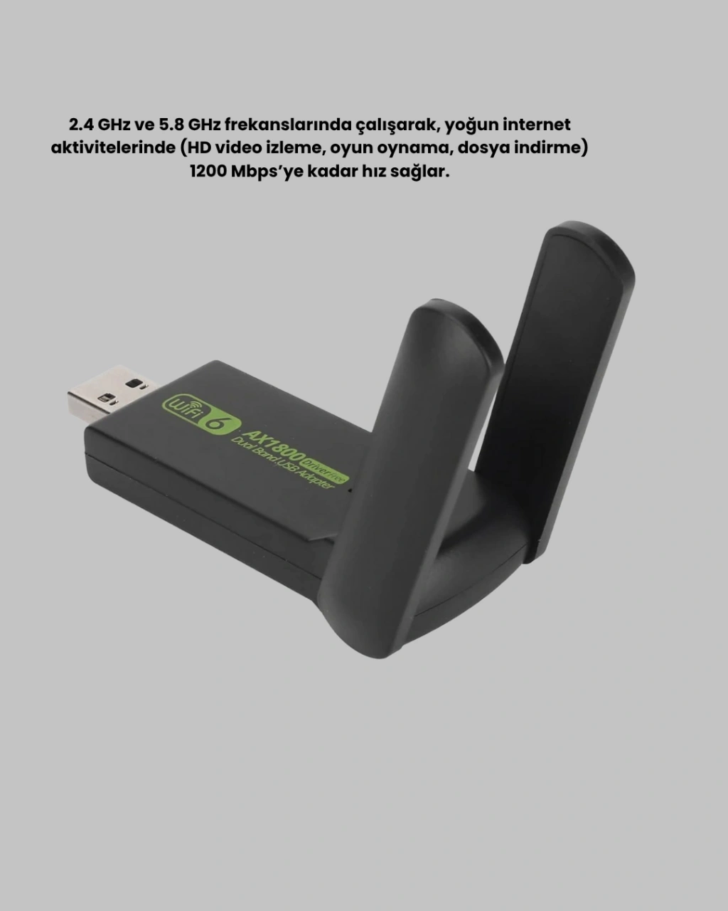 Yüksek hız ve kararlılığı bir araya getiren Dual Band USB WiFi Adaptör, internet deneyiminizi tamamen değiştiriyor!Çift bant teknolojisi sayesinde 2.4 GHz ve 5.8 GHz frekanslarında çalışarak, 1200 Mbps’ye kadar bağlantı hızı sunar. Bu sayede HD video izleme, online oyun oynama veya büyük dosyalar indirme gibi yüksek veri gerektiren işlemleri kesintisiz şekilde gerçekleştirebilirsiniz.Çift antenli güçlü tasarımı, geniş bir kapsama alanı sağlar ve zayıf sinyalli bölgelerde bile istikrarlı bir bağlantı sunar. İnternet kesintileri veya düşük sinyal sorunları artık geçmişte kalıyor.USB 3.0 bağlantı desteği, veri transfer hızını artırarak gecikmeleri en aza indirir. Bu sayede kablosuz bağlantıda maksimum performans elde edilir.Windows 10/8/7/Vista/XP/2000 ve Mac OS X 10.15 işletim sistemleriyle tam uyumludur. Eski ya da yeni bilgisayar fark etmeksizin kolayca tanınır ve hızlı kurulum imkânı sunar. Tak-çalıştır özelliği sayesinde teknik bilgiye gerek kalmadan anında kullanıma başlayabilirsiniz.Hem ev kullanıcıları hem ofis ortamları için ideal olan bu adaptör, stabil, güçlü ve hızlı internet bağlantısı arayanlar için mükemmel bir çözümdür.Modern, pratik ve güçlü: Dual Band USB WiFi Adaptör ile her yerde kesintisiz bağlantı keyfi sizi bekliyor!