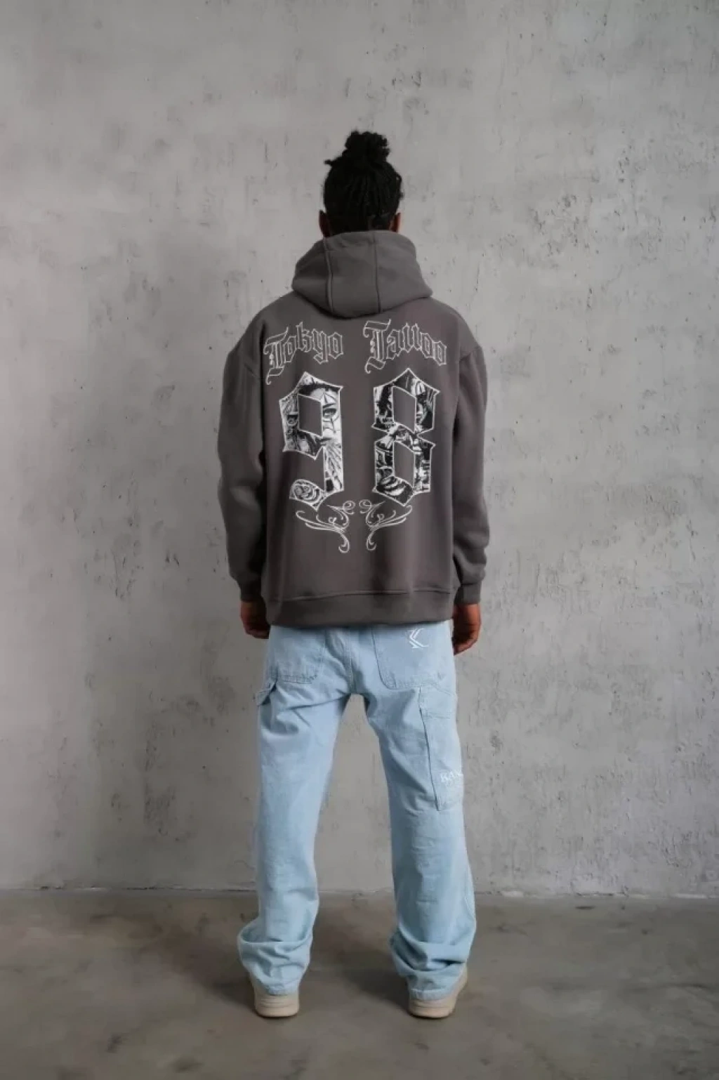 Erkek 98 Baskılı Kapşonlu Sweat - Gri