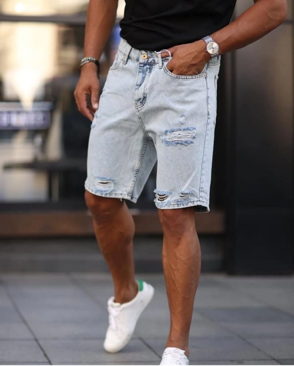 Erkek Yırtık Detaylı Kot Şort