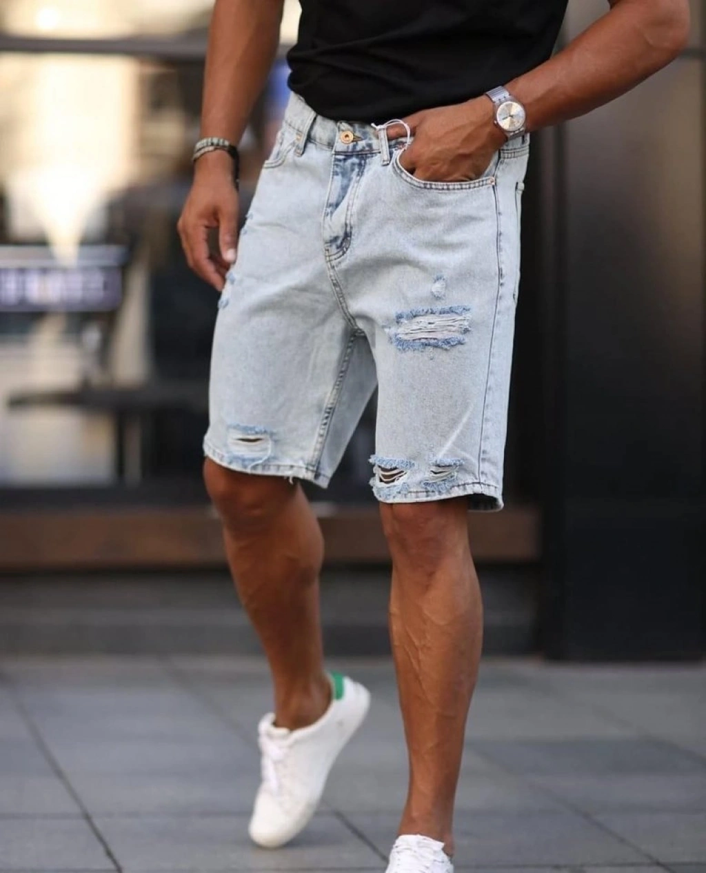 Erkek Yırtık Detaylı Kot Şort