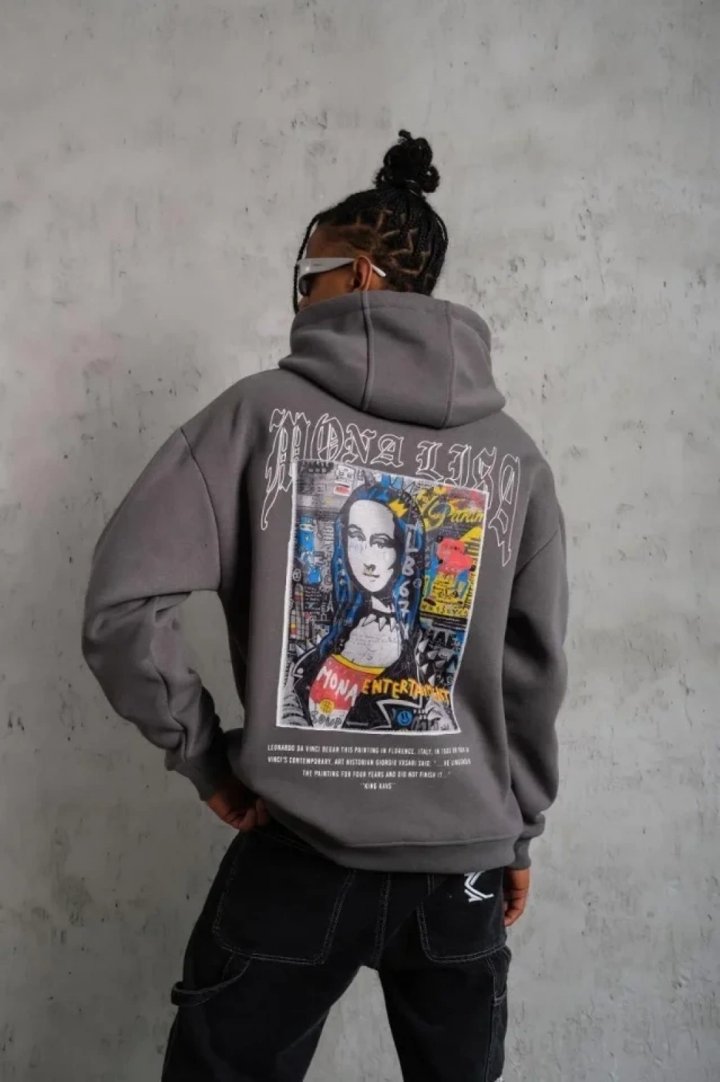 Erkek Maske Baskılı Kapüşonlu Sweat - Gri
