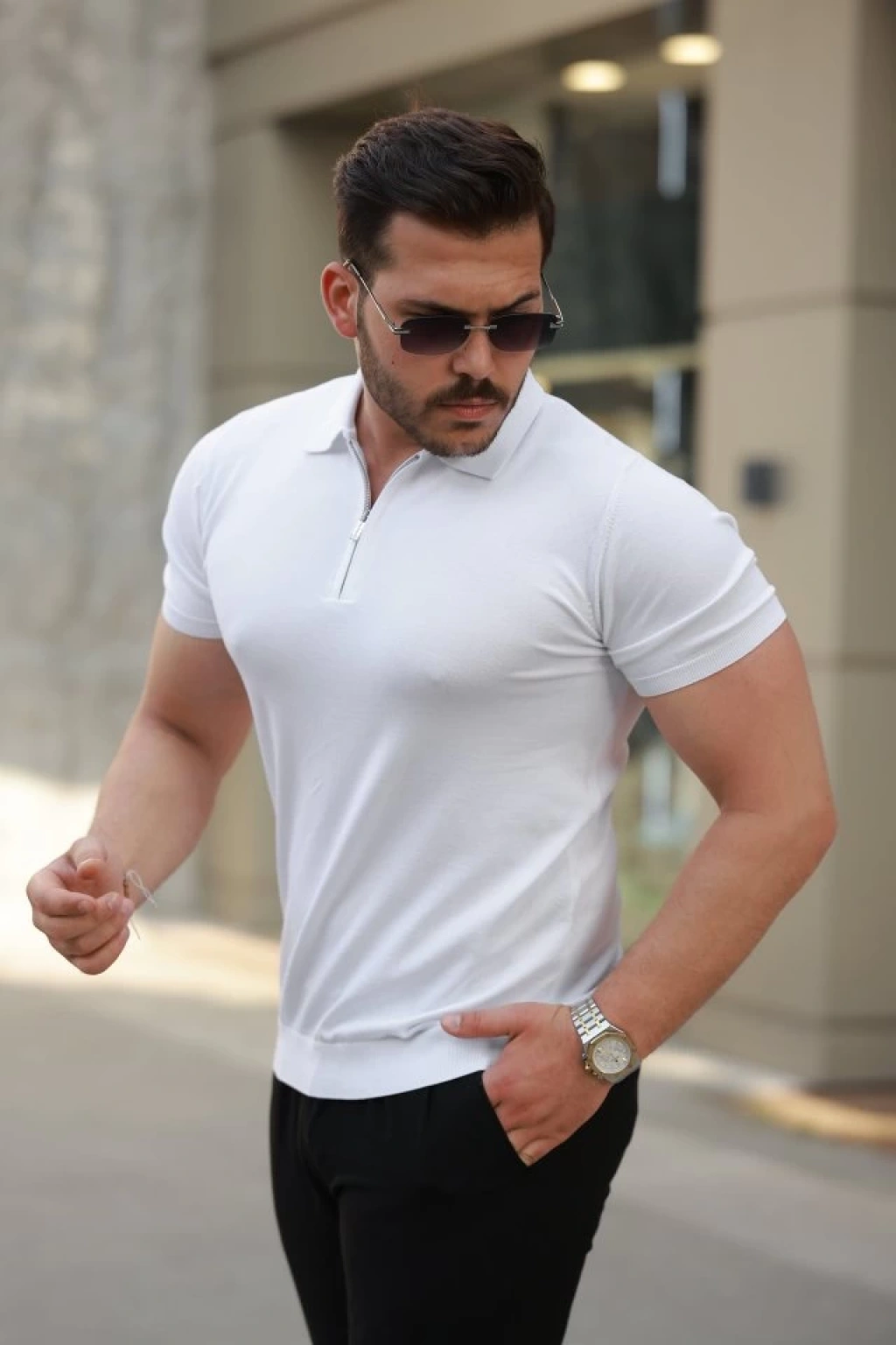 Erkek Fermuar Yakalı Kısa Kollu Tişört
