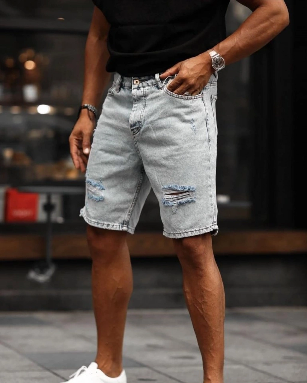 Erkek Kar Yıkama Yırtık Detaylı Şort