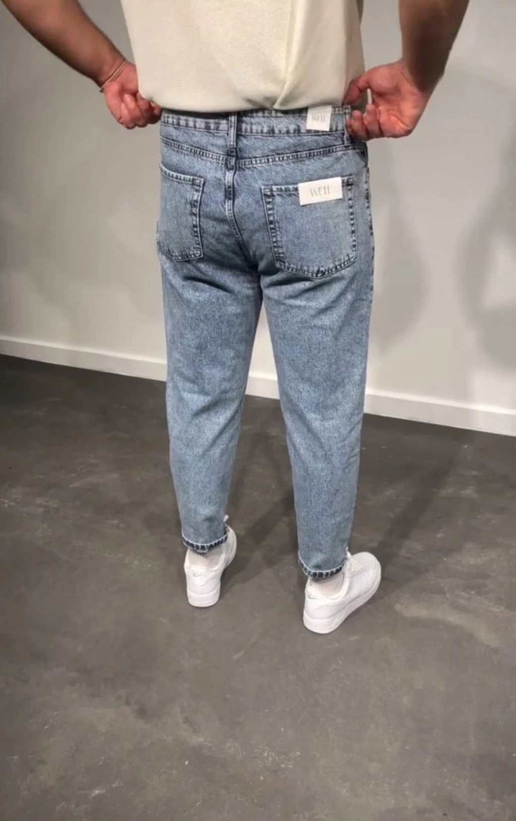 Erkek Kar Yıkamalı Buz Mavi Mom Jean