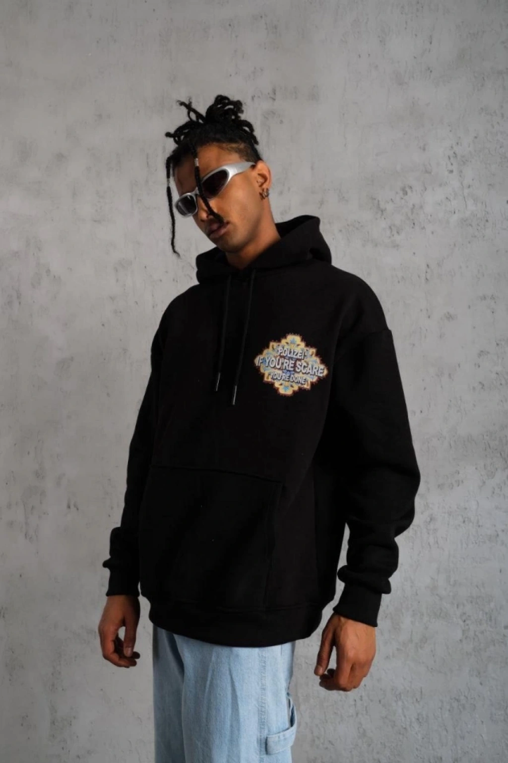 Erkek Kilim Desen Kapüşonlu - Siyah