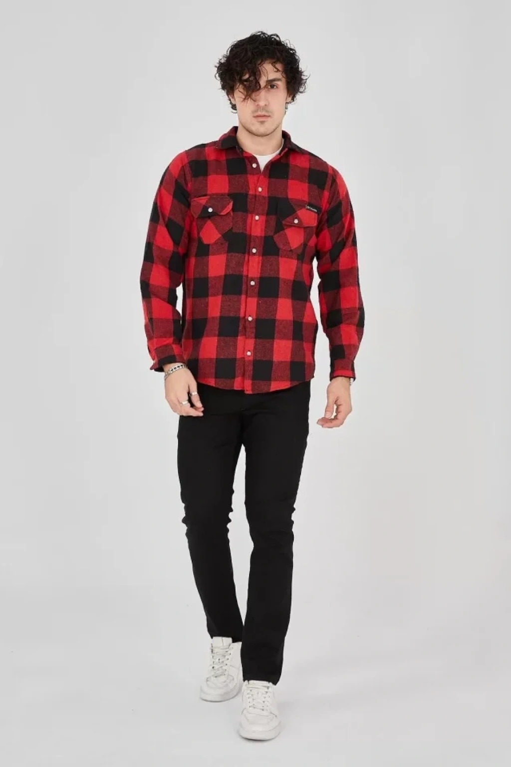 Erkek Uzun Kollu Cepli Kadife Gömlek