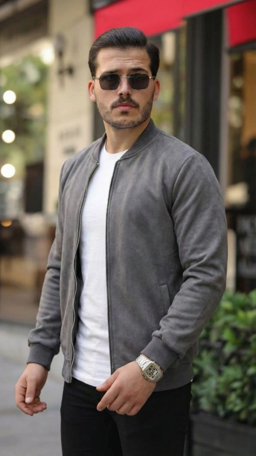 Erkek Scuba Süet Kumaş Bomber Hırka