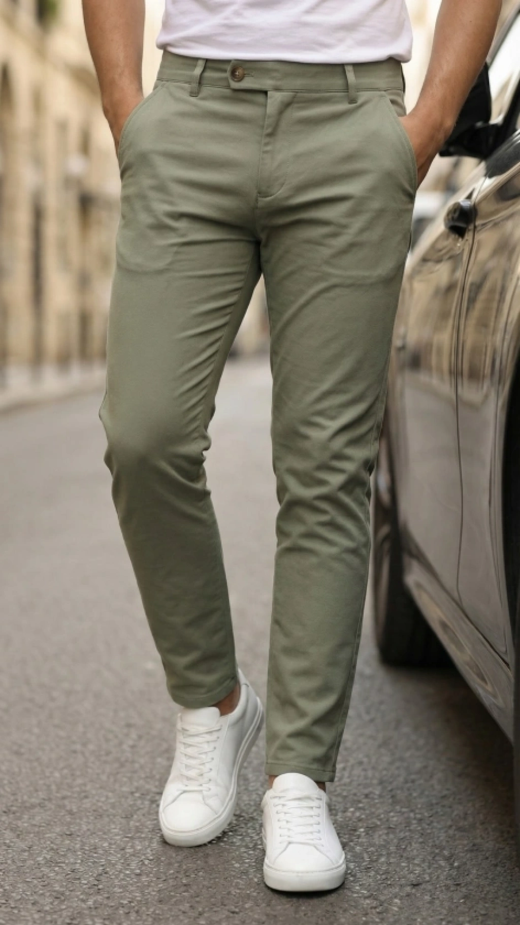 Erkek Belden Düğmeli Cepli Dokuma Pantolon
