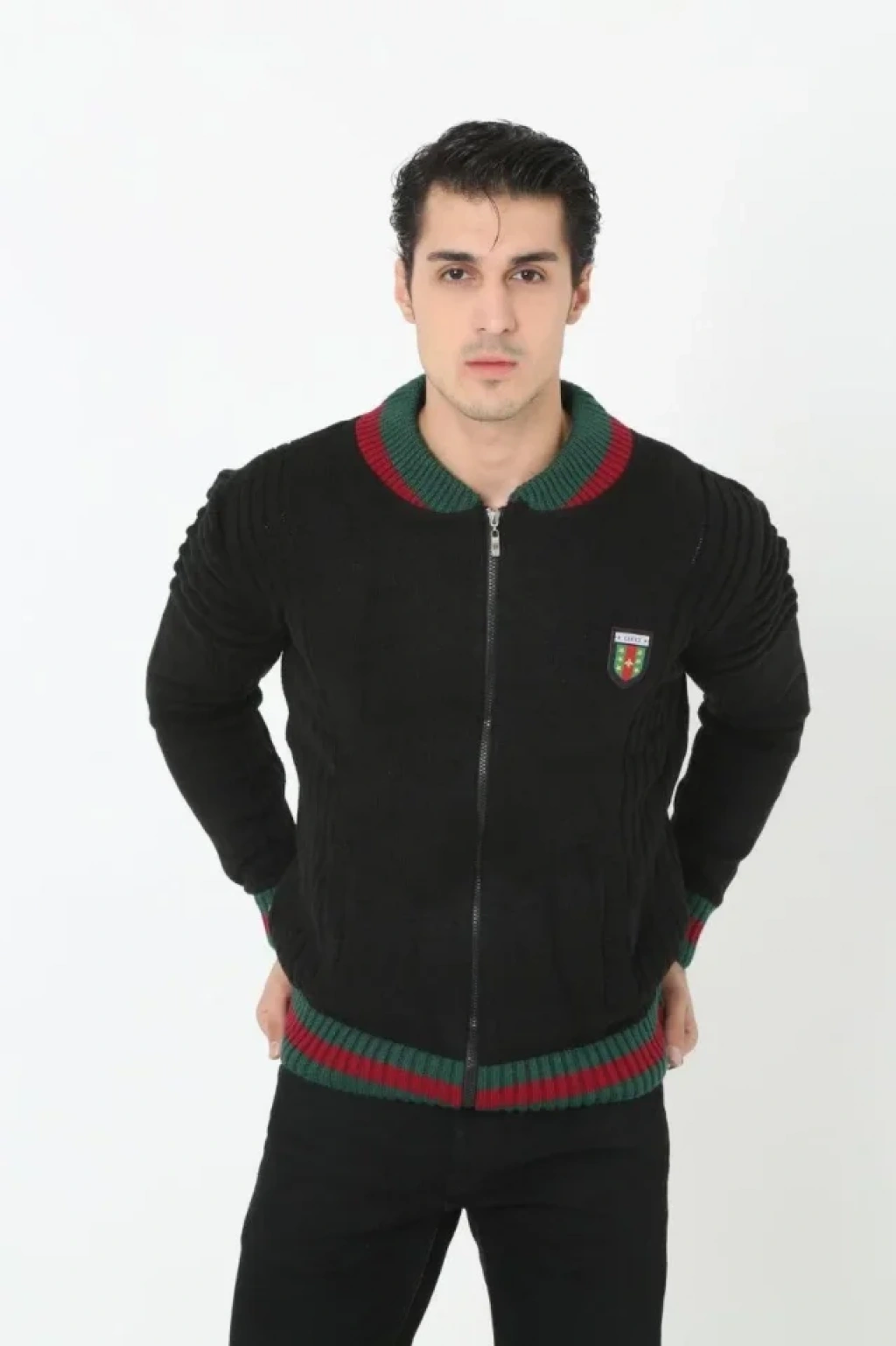 Erkek Tam Fermuarlı Triko Hırka - Siyah