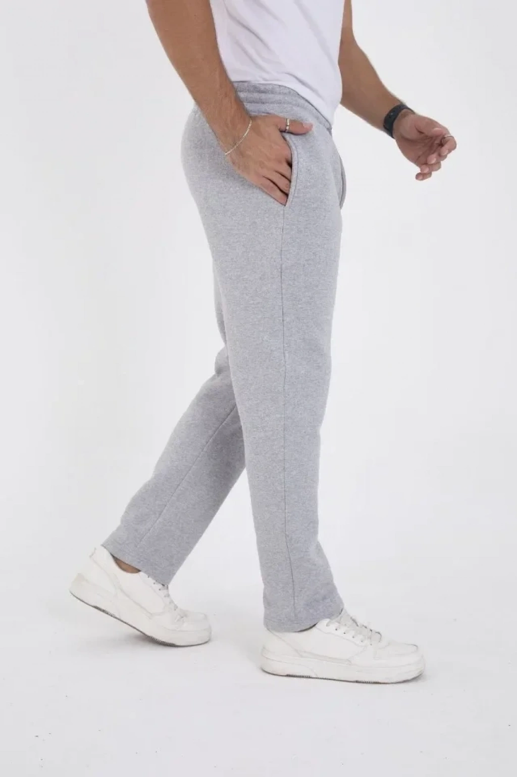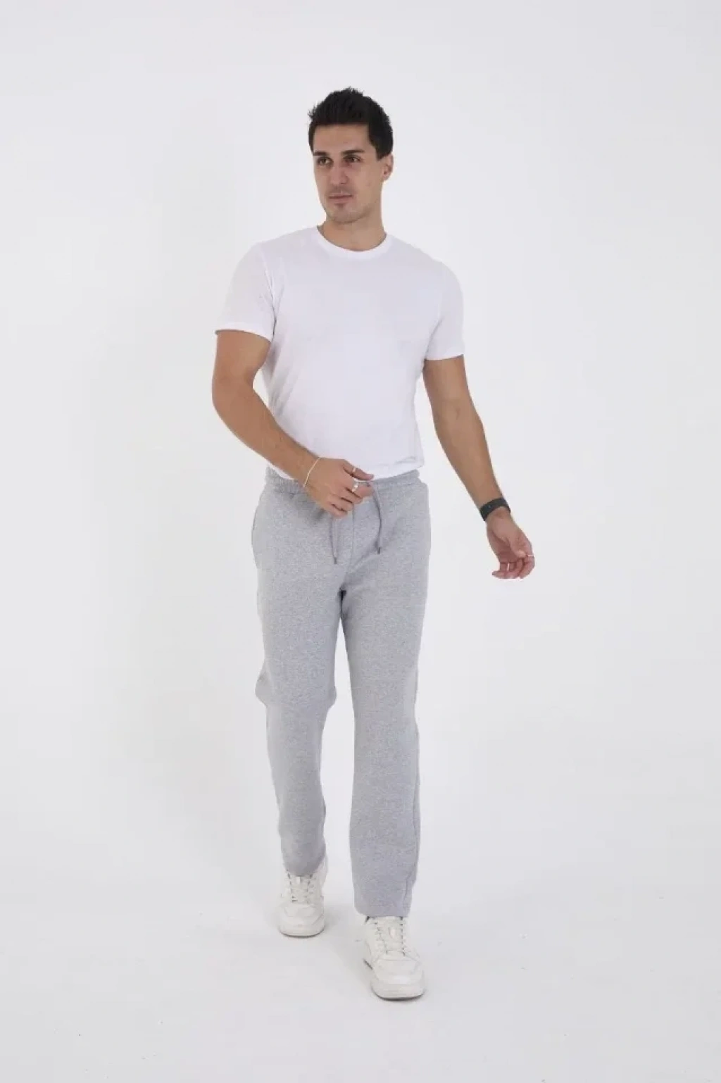Erkek Üç İplik Basic Eşofman Boru Paça İpli Pantolon - Gri