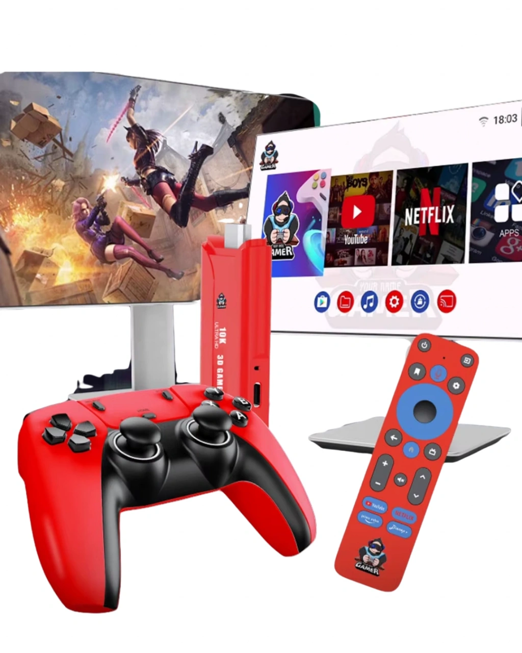 Android TV Game Stick, televizyonunuzda yüksek çözünürlüklü oyun ve medya deneyimi sunar. 10K HD çözünürlük desteği ile net görüntü sağlar.3D oyun desteği, akıcı performans ve güçlü işlemci sayesinde takılma olmadan oyun oynayabilirsiniz. 64GB dahili depolama alanı geniş kullanım sunar.Çift kumanda ile iki kişilik oyun oynanabilir. 5G WiFi internet desteği hızlı bağlantı sağlar.YouTube, Netflix, MYTV ve Magis hazır yüklüdür.Kutu içeriği tam set olarak gönderilmektedir.