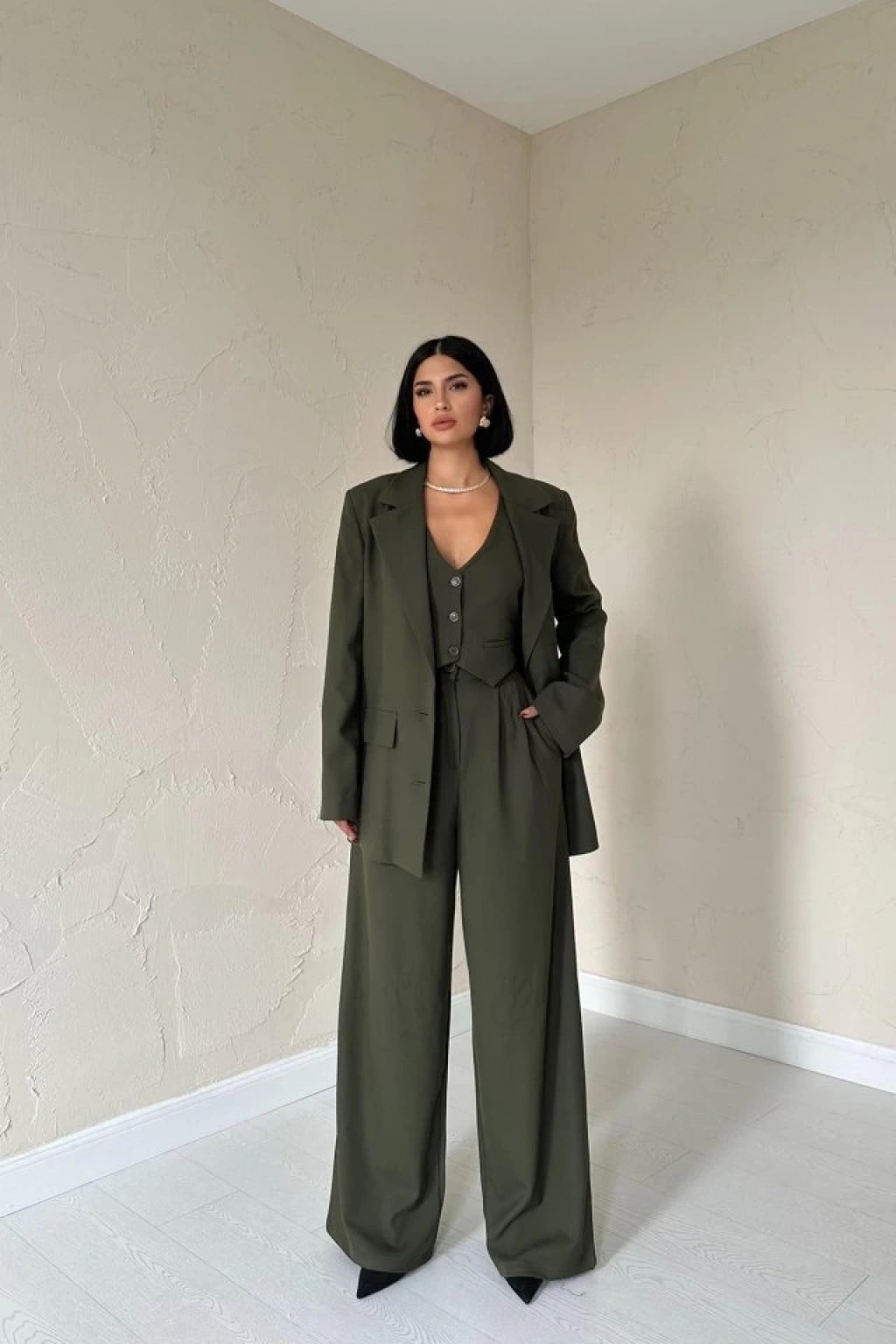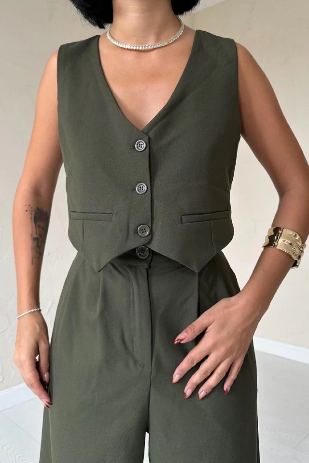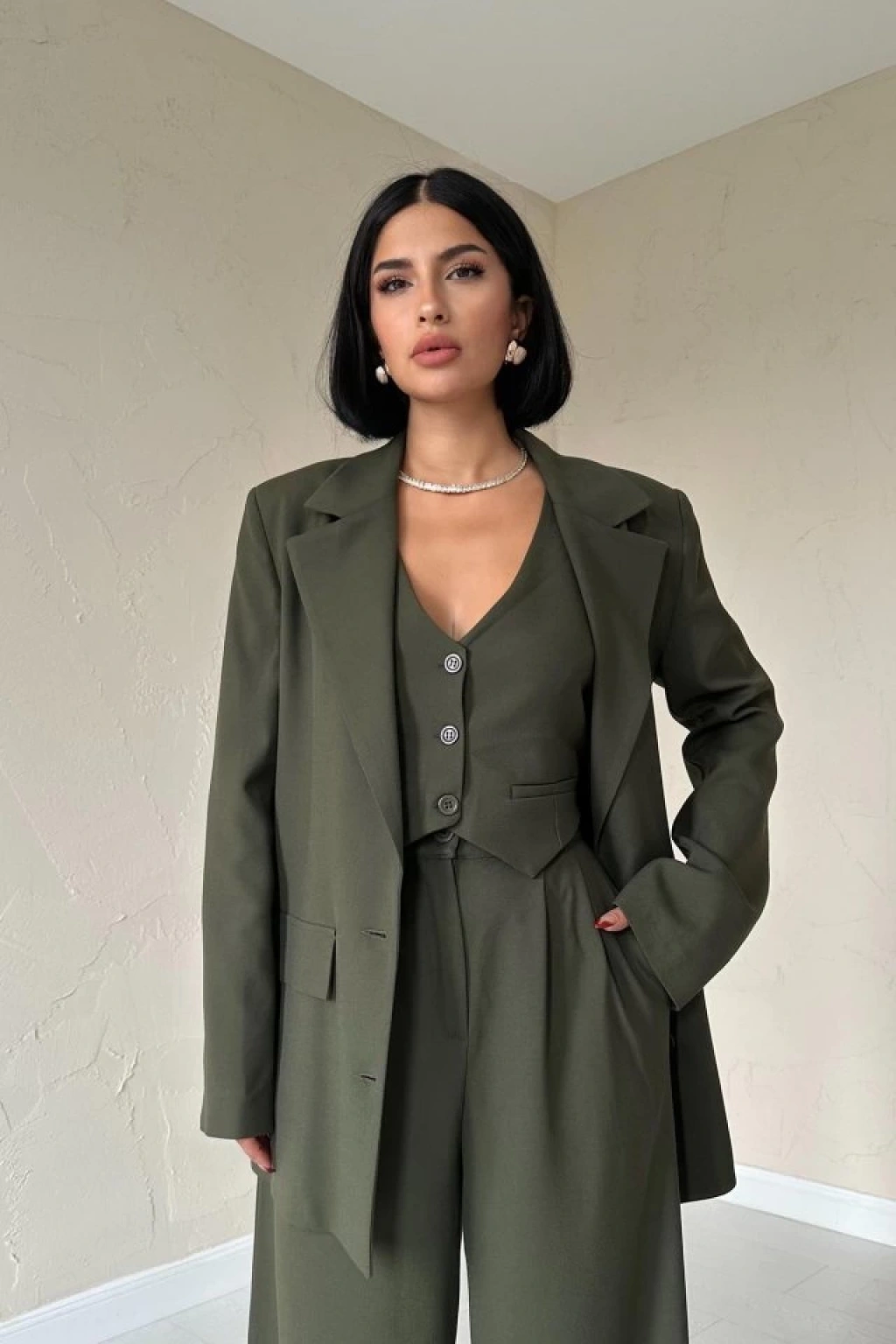 Haki Klas Ceket Ve Yelek Ve Pantolon Takım