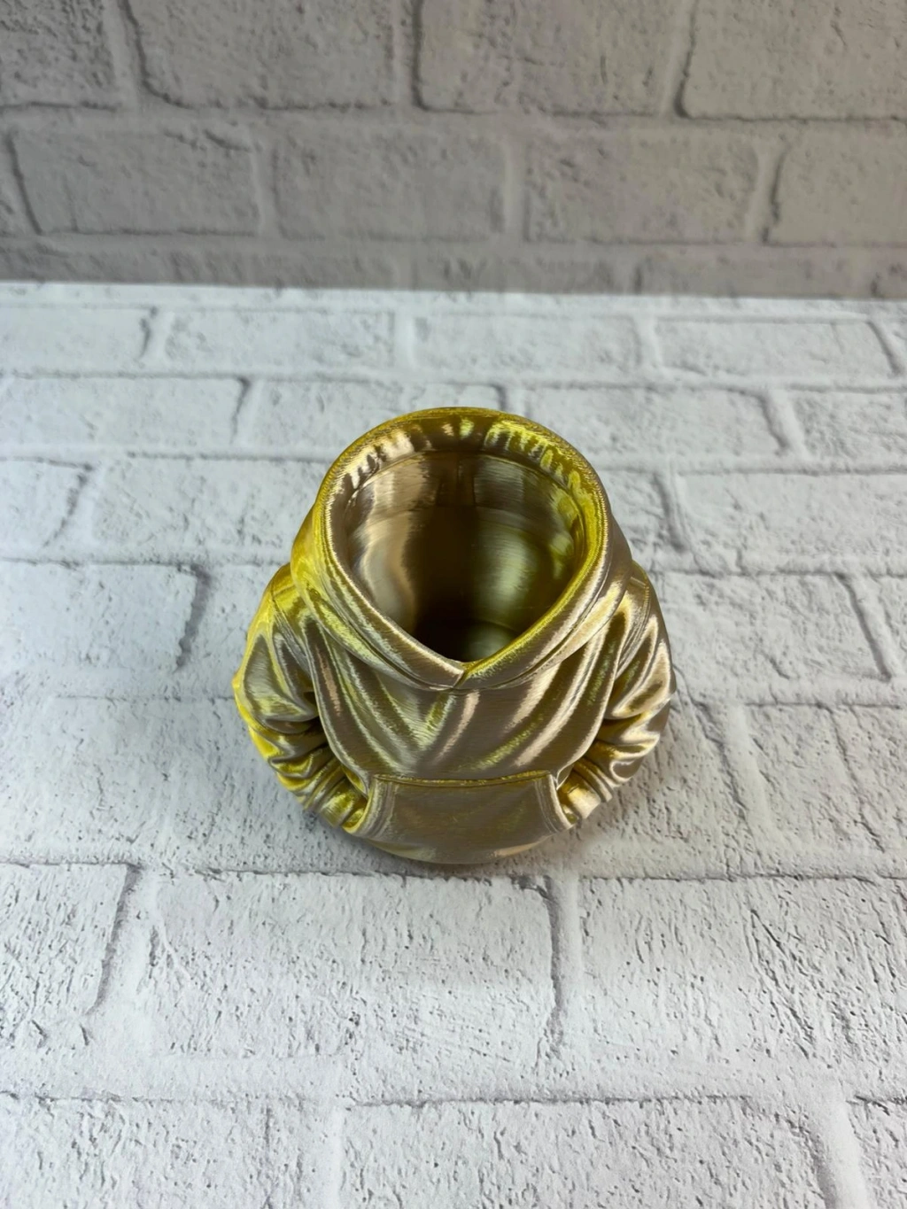 Gold hoodie kalemlik, masa üstü düzenini sağlarken aynı zamanda dekoratif bir görünüm sunan eğlenceli bir aksesuardır. 10x10 cm ölçüsü ile masa, raf veya kitaplık üzerinde rahatlıkla kullanılabilir. Hoodie şeklindeki tasarımı, ürünü sıradan kalemliklerden ayırarak özgün bir stil ortaya koyar.Gold rengi, bulunduğu alana ışıltılı ve şık bir hava katar. Evde çalışma alanlarında, ofis masalarında veya genç odalarında rahatlıkla tercih edilebilir. Kalem, silgi ve küçük ofis gereçlerini düzenli şekilde saklamaya yardımcı olurken masa üstünde estetik bir detay oluşturur.Dekoratif yapısı sayesinde yalnızca işlevsel bir kalemlik değil, aynı zamanda masa düzenini tamamlayan bir obje olarak da kullanılabilir. Küçük boyutları sayesinde dar alanlarda bile yer kaplamaz ve düzenli bir görünüm sağlar.Dayanıklı yapısı ile günlük kullanıma uygundur. Masa üstüne hem şıklık hem de hareket katmak isteyenler için ideal bir üründür. Eğlenceli tasarımı sayesinde hediye alternatifi olarak da öne çıkar.