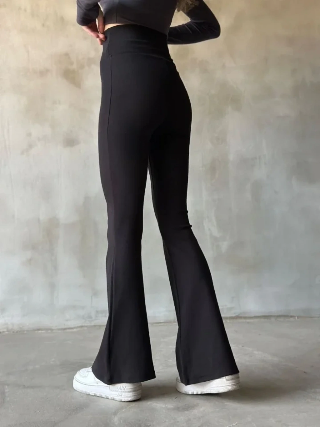 İspanyol Paça Yüksek Bel Tayt - Siyah