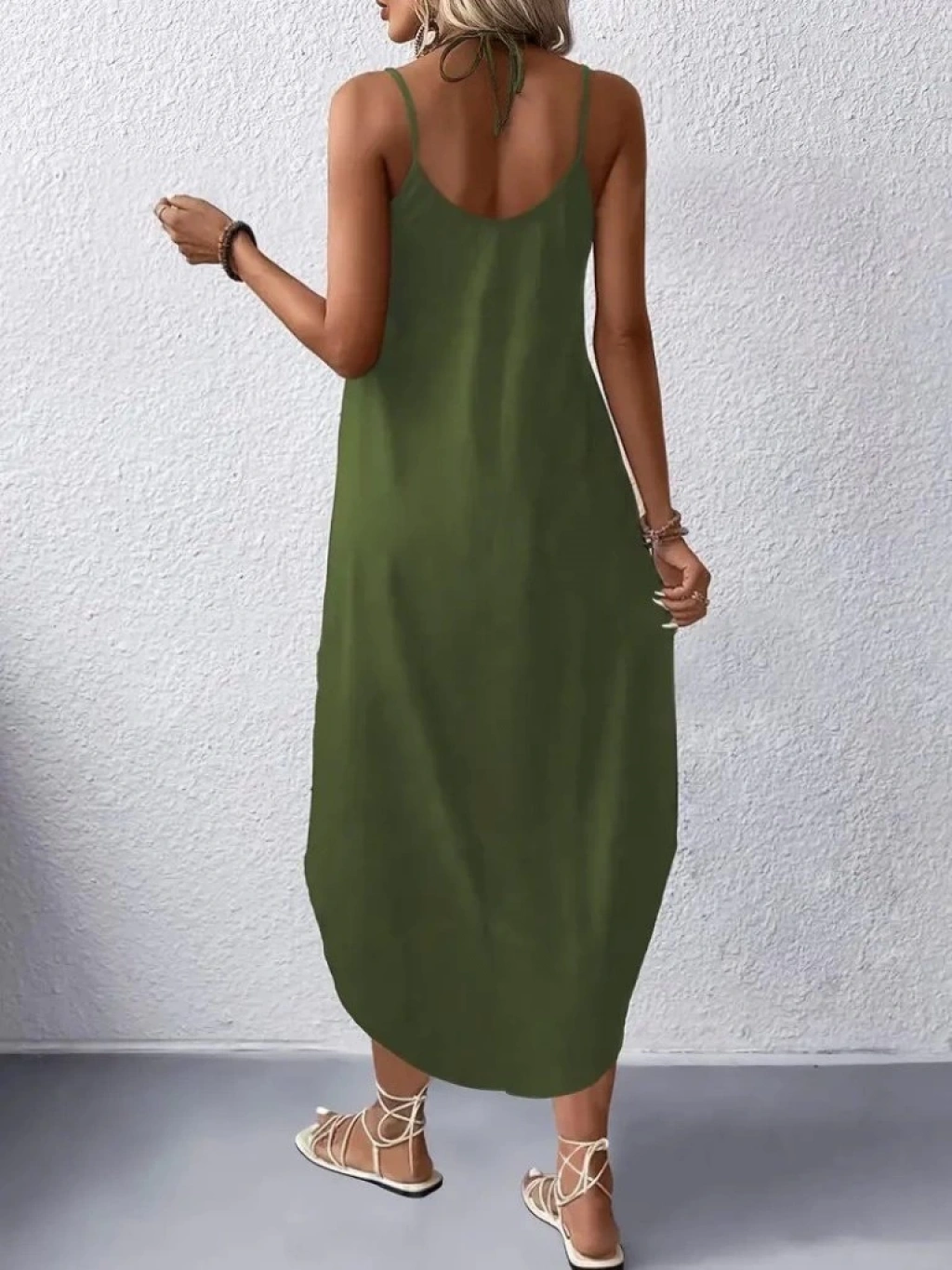Kadın Askılı V Yakalı Uzun Viskon Elbise