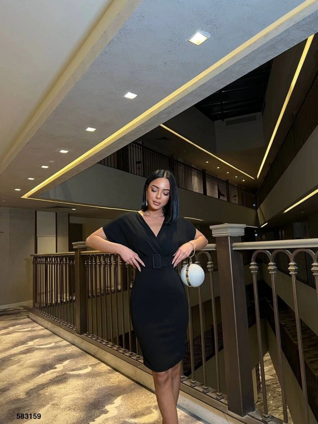 Kadın Dalgıç Krep V Yaka Ve Sırt Dekolte Detaylı Elbise