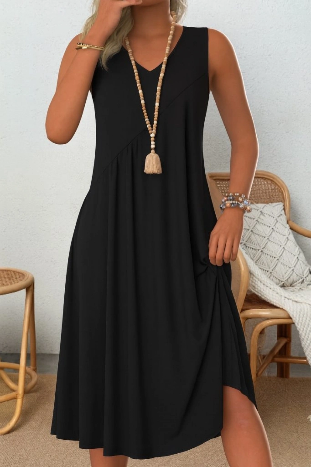 Kadın Kolsuz V Yakalı Mikro Elbise