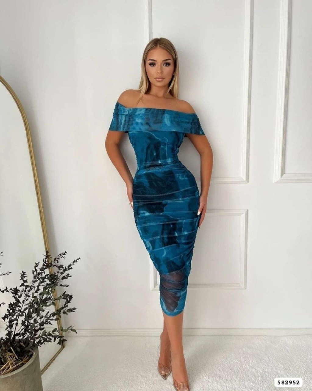 Kadın Madonna Yaka Tül Elbise