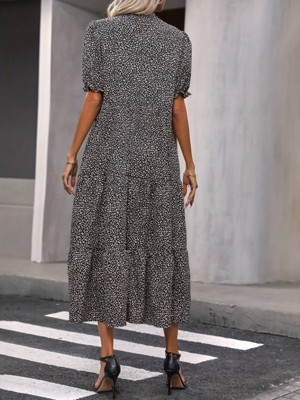 Kadın Mini Leopar Desen Midi üç Kat Elbise