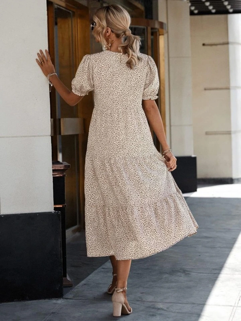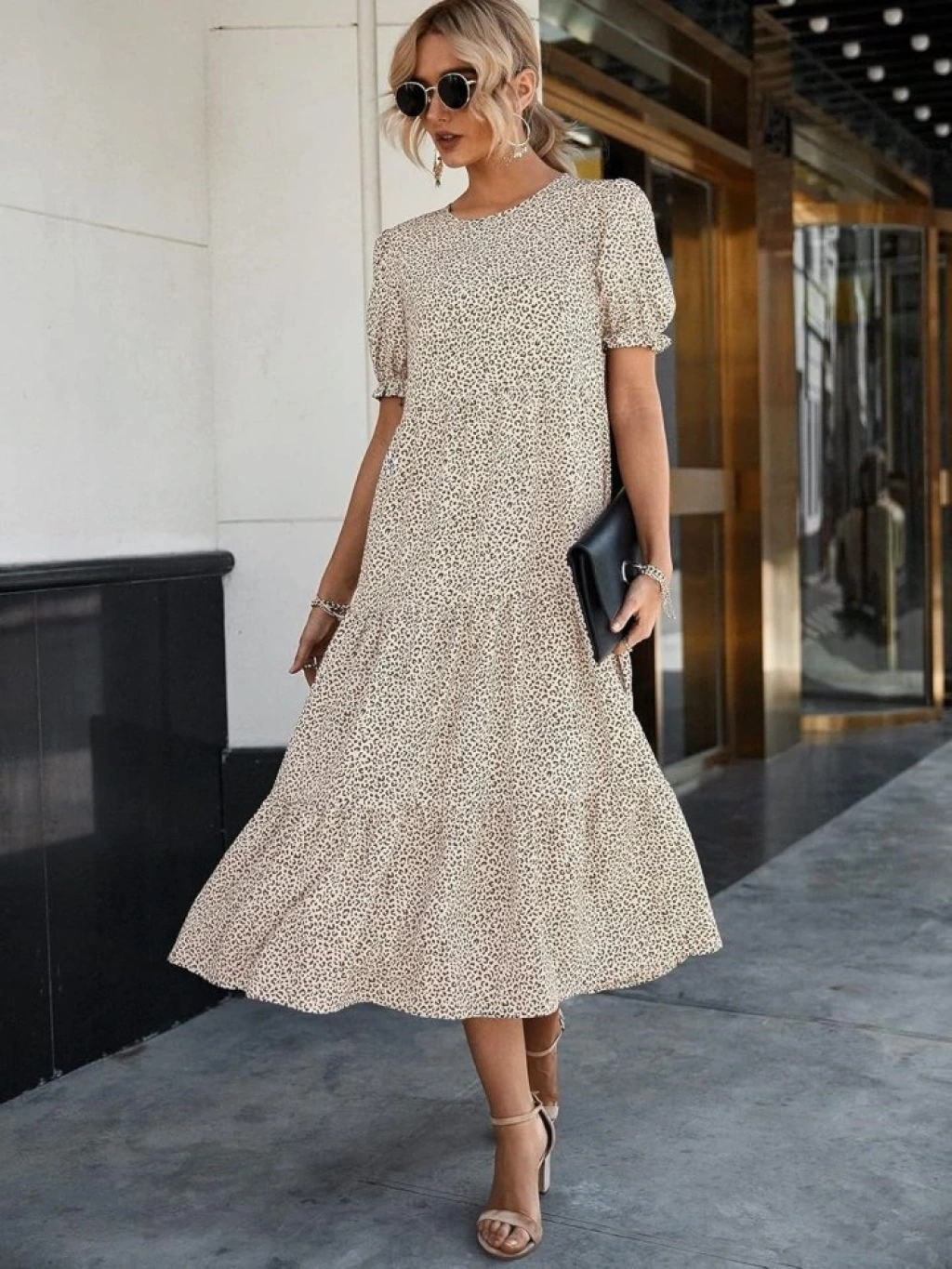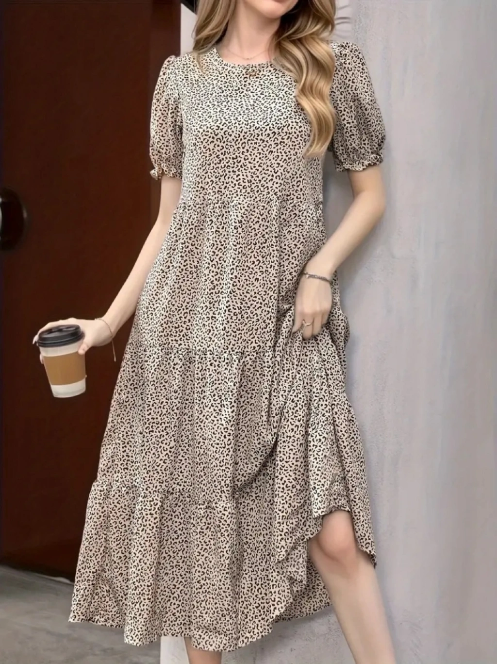 Kadın Mini Leopar Desen Midi üç Kat Elbise