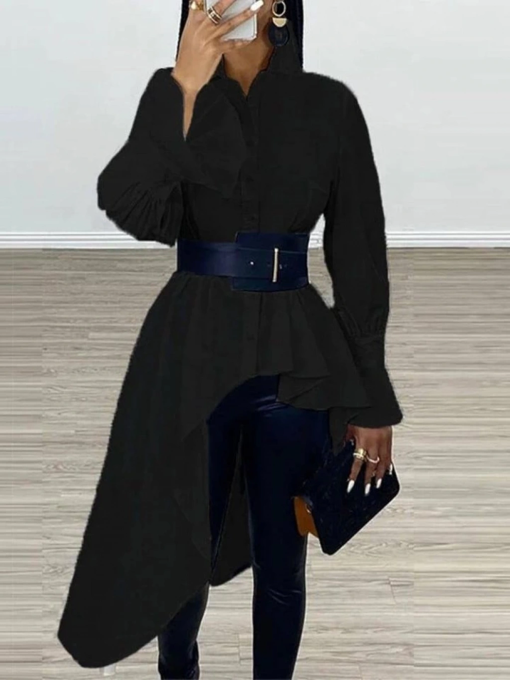 Kadın Pamuk Polyester Kumaş, Asimetrik Kesim Gömlek (Kemer Dahil)