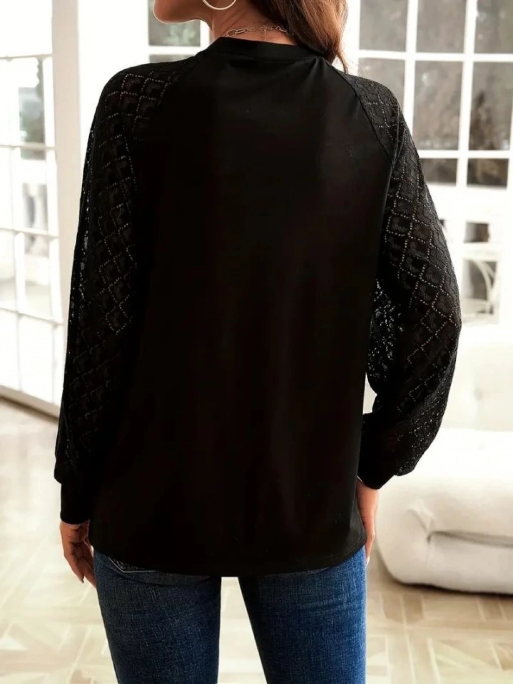Kadın Uzun Kollu Bisiklet Yaka Kollar Dantel önü çizgi Detaylı Viskon Bluz