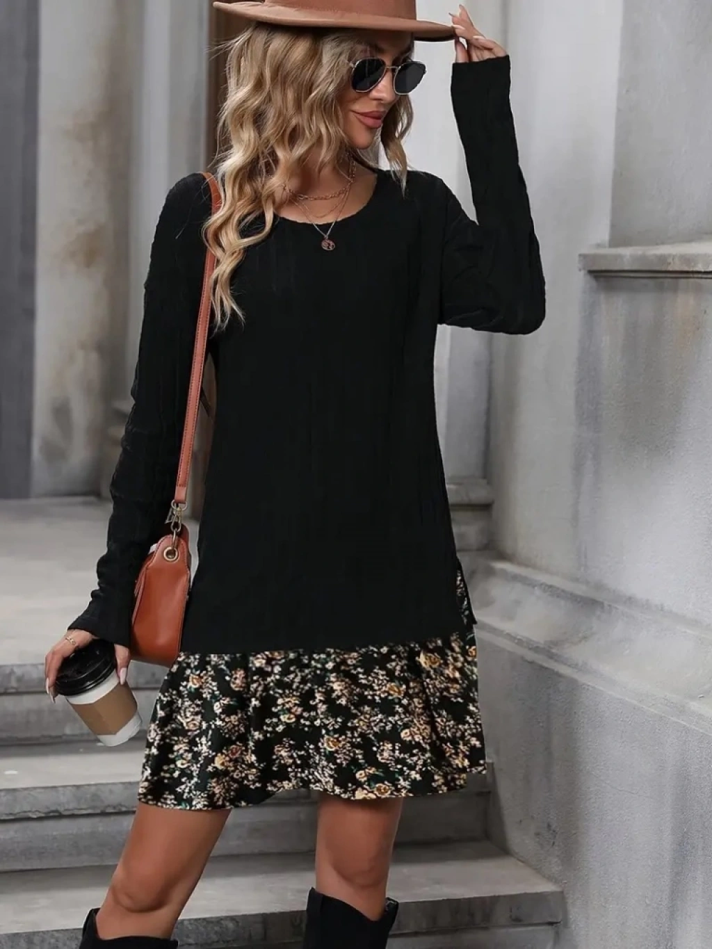 Kadın Uzun Kollu Bisiklet Yaka şardonlu Kaşkorse Bluz Ve Süprem Etek