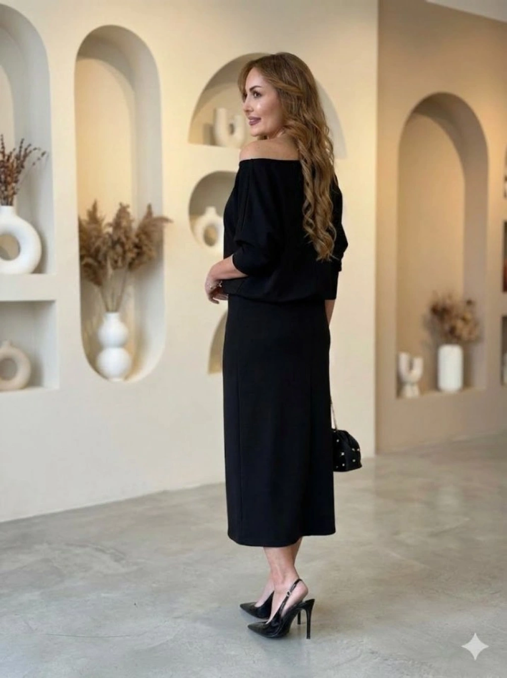 Kadın Uzun Kollu Kayık Yaka Elbise