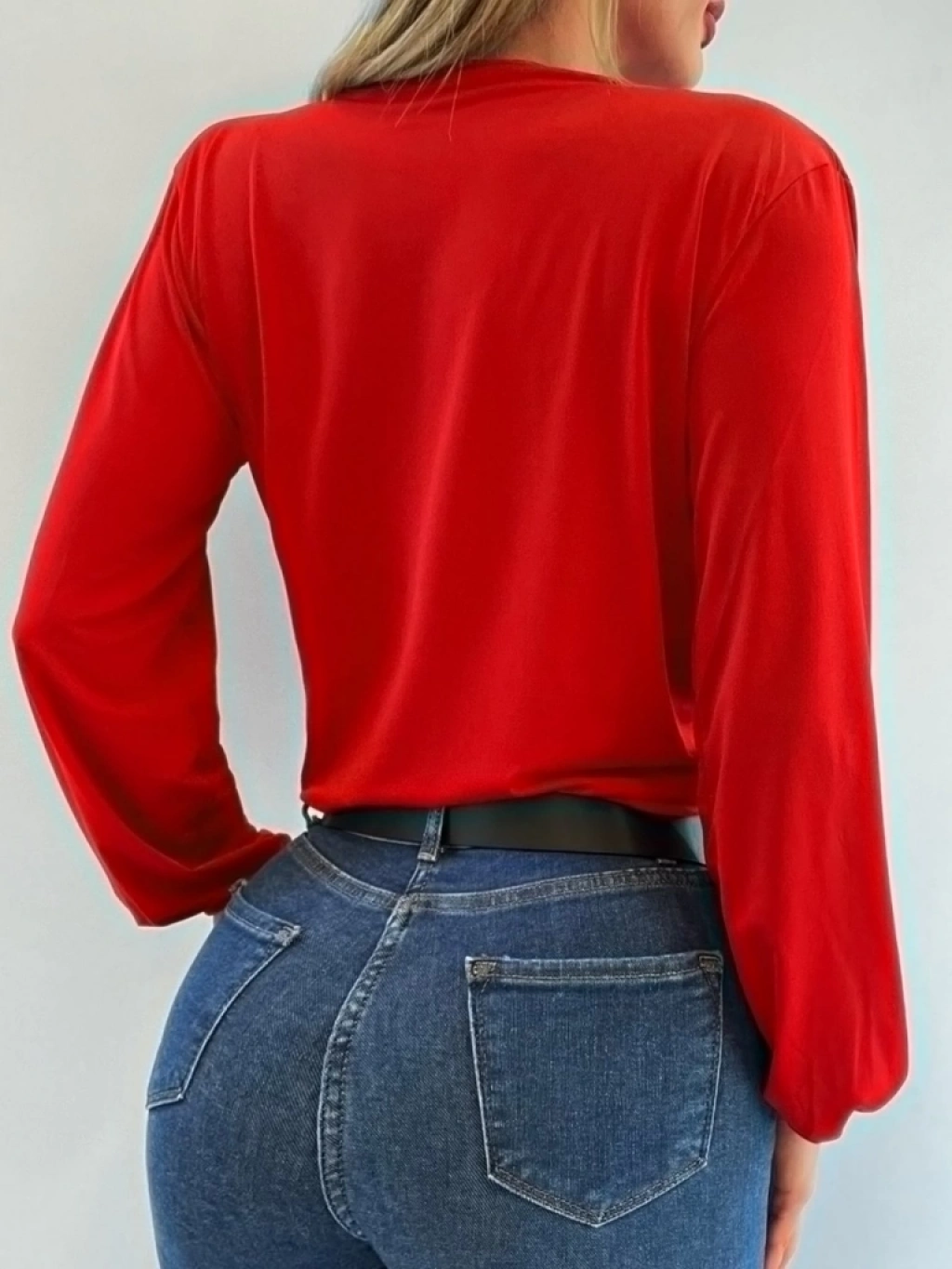 Kadın Uzun Kollu Kruvaze Yaka Sandy Bluz