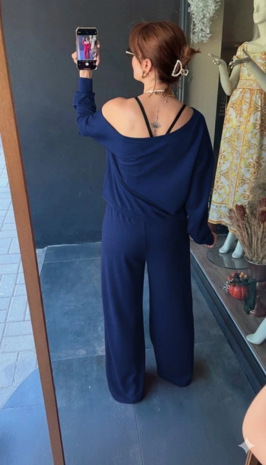 Kadın Uzun Kollu Tek Omuzdan Açık Viskon Iki Iplik Bluz Ve Pantolon Ikili Takım