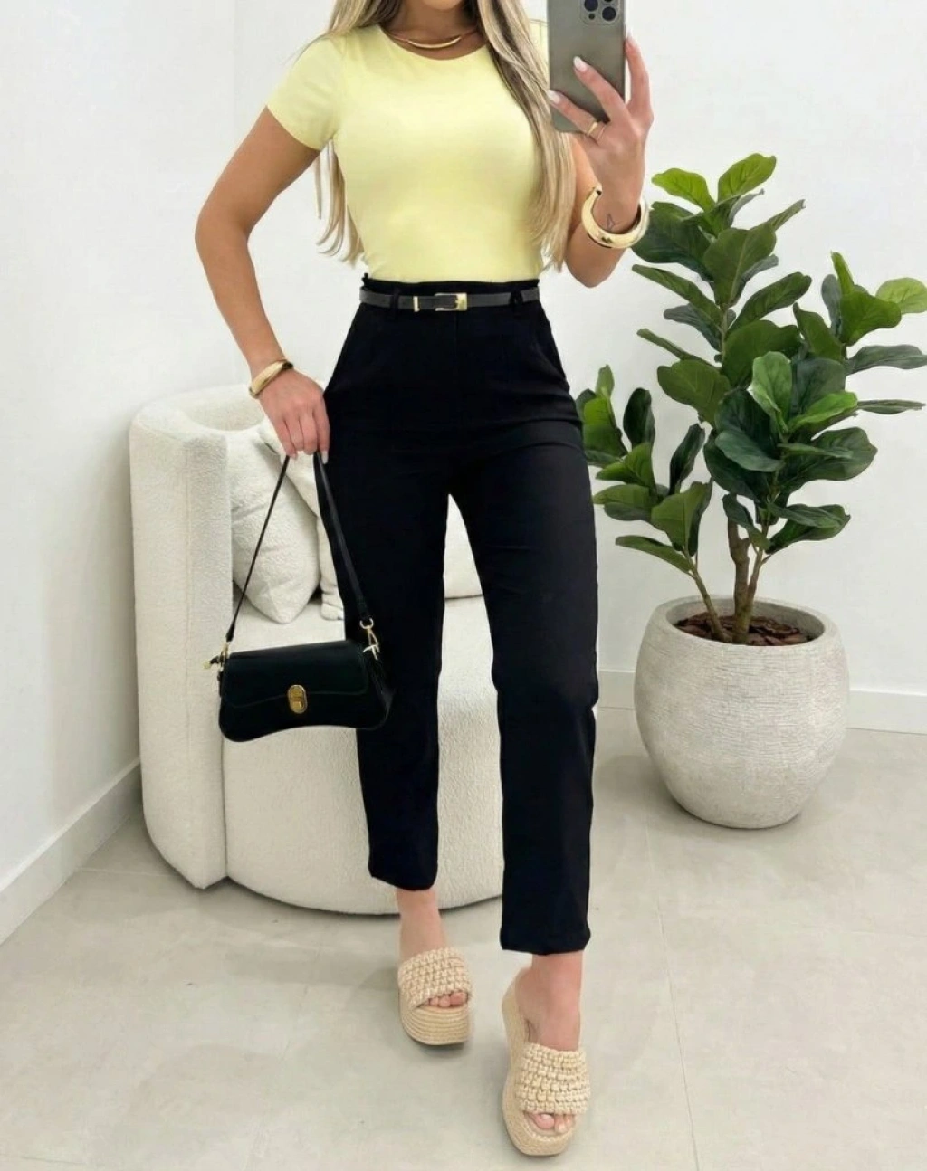 Kadın Yüksek Bel Kemersiz Ithal Krep Pantolon