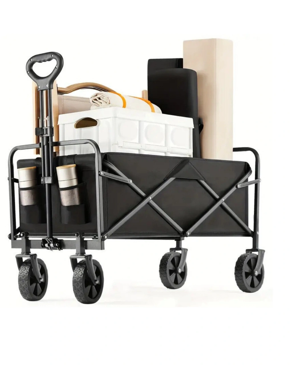 Katlanabilir Kamp ve Plaj Taşıma Arabası, hem açık hava etkinliklerinde hem de günlük yaşamda taşıma kolaylığı sunan fonksiyonel bir vagon modelidir. Kamp alanlarında, plajda, bahçede veya alışveriş sırasında eşyaların tek seferde taşınmasına yardımcı olur.Katlanabilir tasarımı sayesinde kullanım sonrası saniyeler içinde kapatılabilir. Kompakt boyutu sayesinde araç bagajında veya evde kolayca saklanabilir. Montaj gerektirmeyen yapısı, ürünü pratik ve kullanıcı dostu hale getirir.74,8 kg taşıma kapasitesi, ürünü ağır yükler için uygun kılar. Geniş iç hacmi ve ek cepleri sayesinde eşyalar düzenli şekilde taşınabilir. 360° dönebilen ön tekerlekler, manevra kabiliyetini artırır ve farklı zeminlerde rahat kullanım sağlar.Ayarlanabilir kulp sistemi, konforlu bir tutuş sunar. Kilitlenebilir yapısı güvenli kullanım sağlar. Sağlam çelik iskeleti ve dayanıklı kumaşı, ürünü uzun ömürlü hale getirir.Katlanabilir Kamp ve Plaj Taşıma Arabası, pratikliği, dayanıklılığı ve çok yönlü kullanım imkânı ile taşıma ihtiyaçları için güvenilir bir tercihtir.