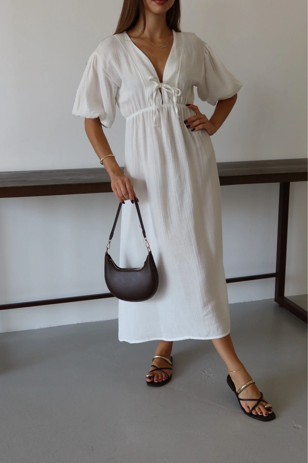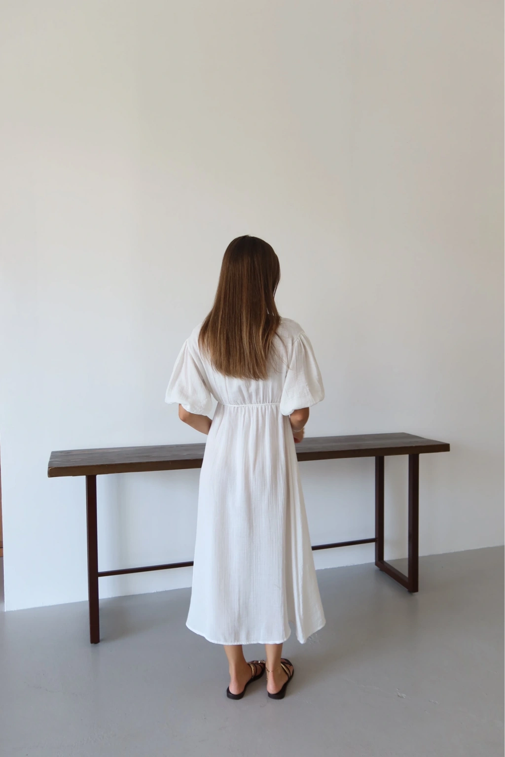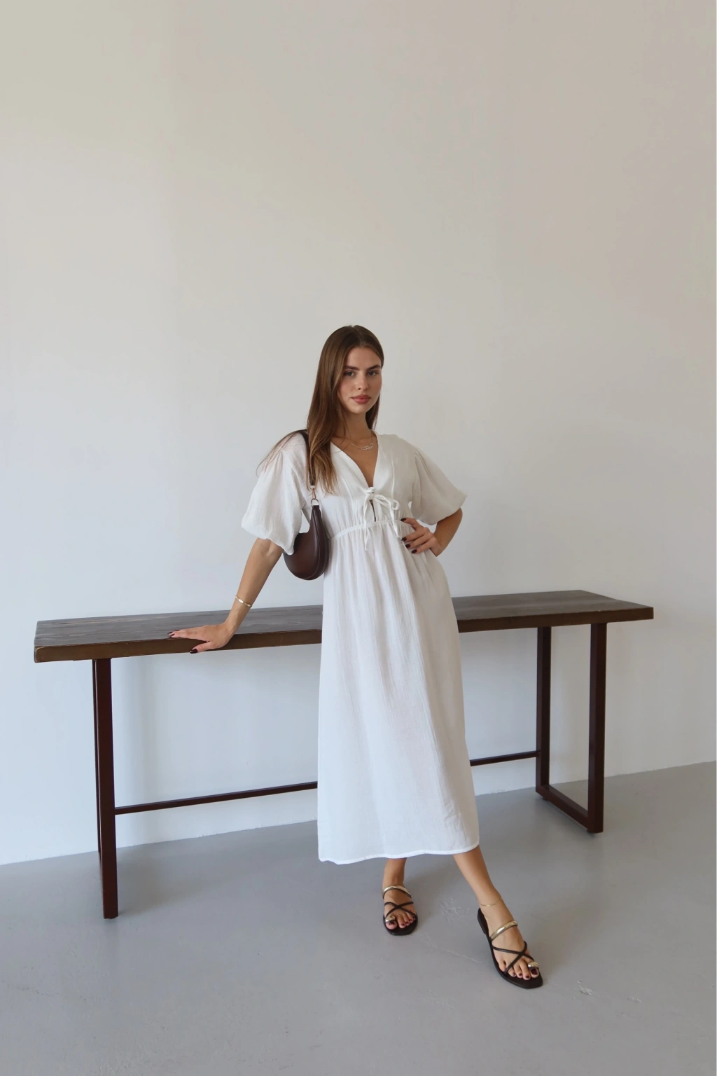 Kısa kollu müslin elbise beyaz pt