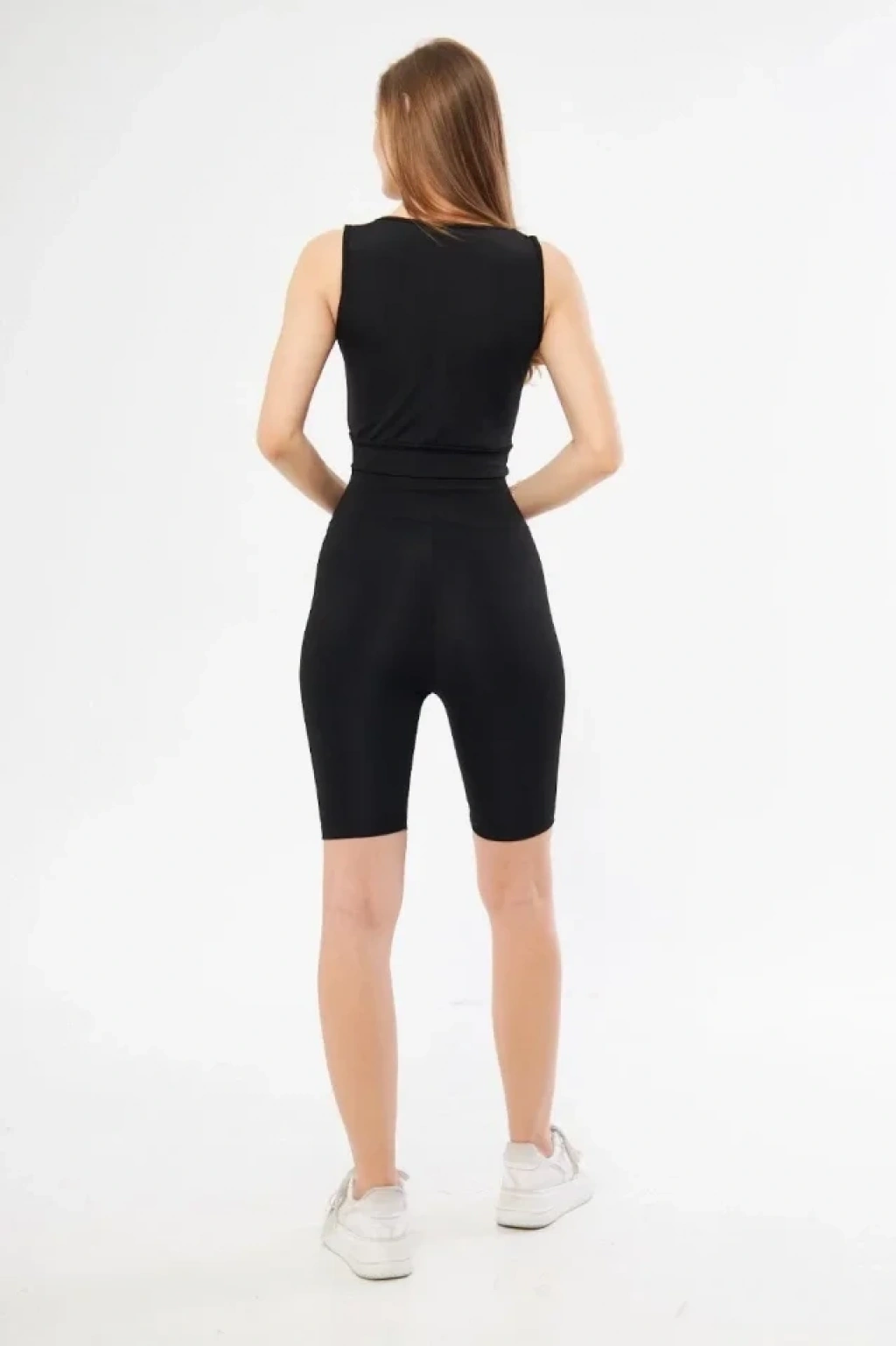 Kolsuz Dalgiç Baskılı Crop - Siyah