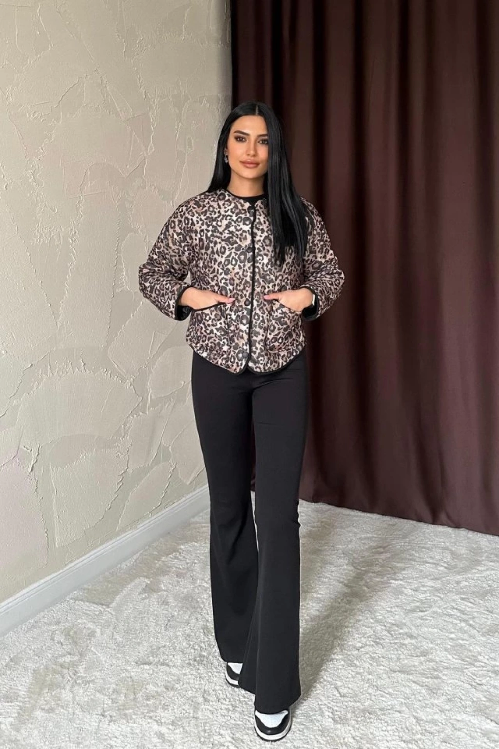Leopar Leopar Desenli Kapitone Ceket