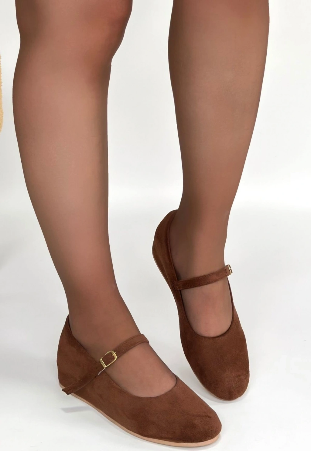 • Lossa Taba Süet Kemerli Babet Ayakkabı