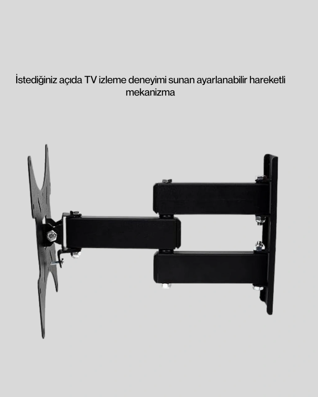LED ve LCD televizyonlar için uyumlu olan bu duvar askı aparatı, modern dizaynı ile yaşam alanlarınıza şıklık katar. Hareketli mekanizması sayesinde televizyonunuzu farklı açılardan rahatça izleyebilirsiniz. Özellikle dar alanlarda kullanım için avantaj sağlar.Dayanıklı malzemeden üretilmiş olup uzun süreli kullanım sunar. Montaj aparatları ile birlikte gönderilir ve kullanıcıya kolay kurulum imkânı tanır.