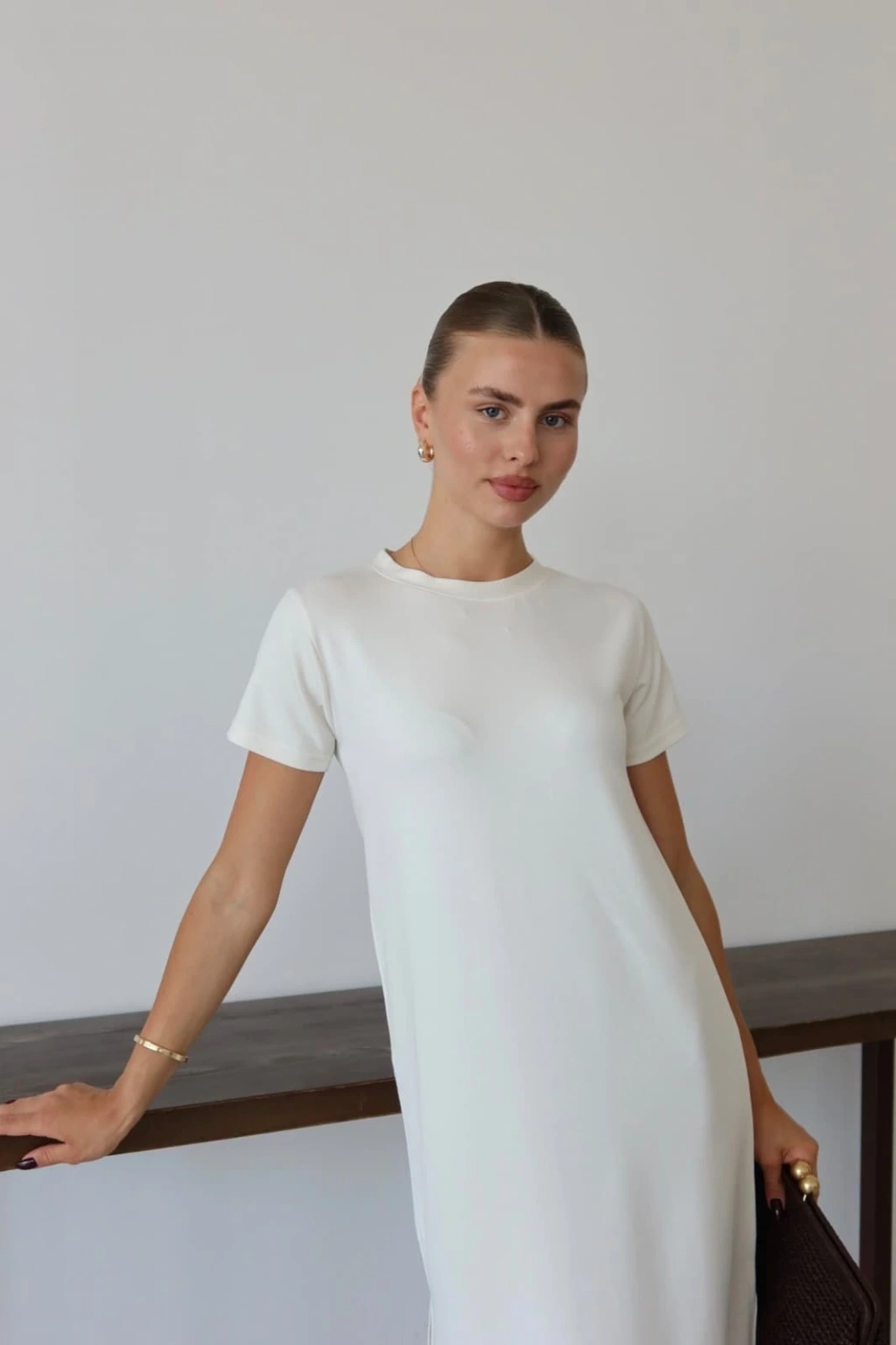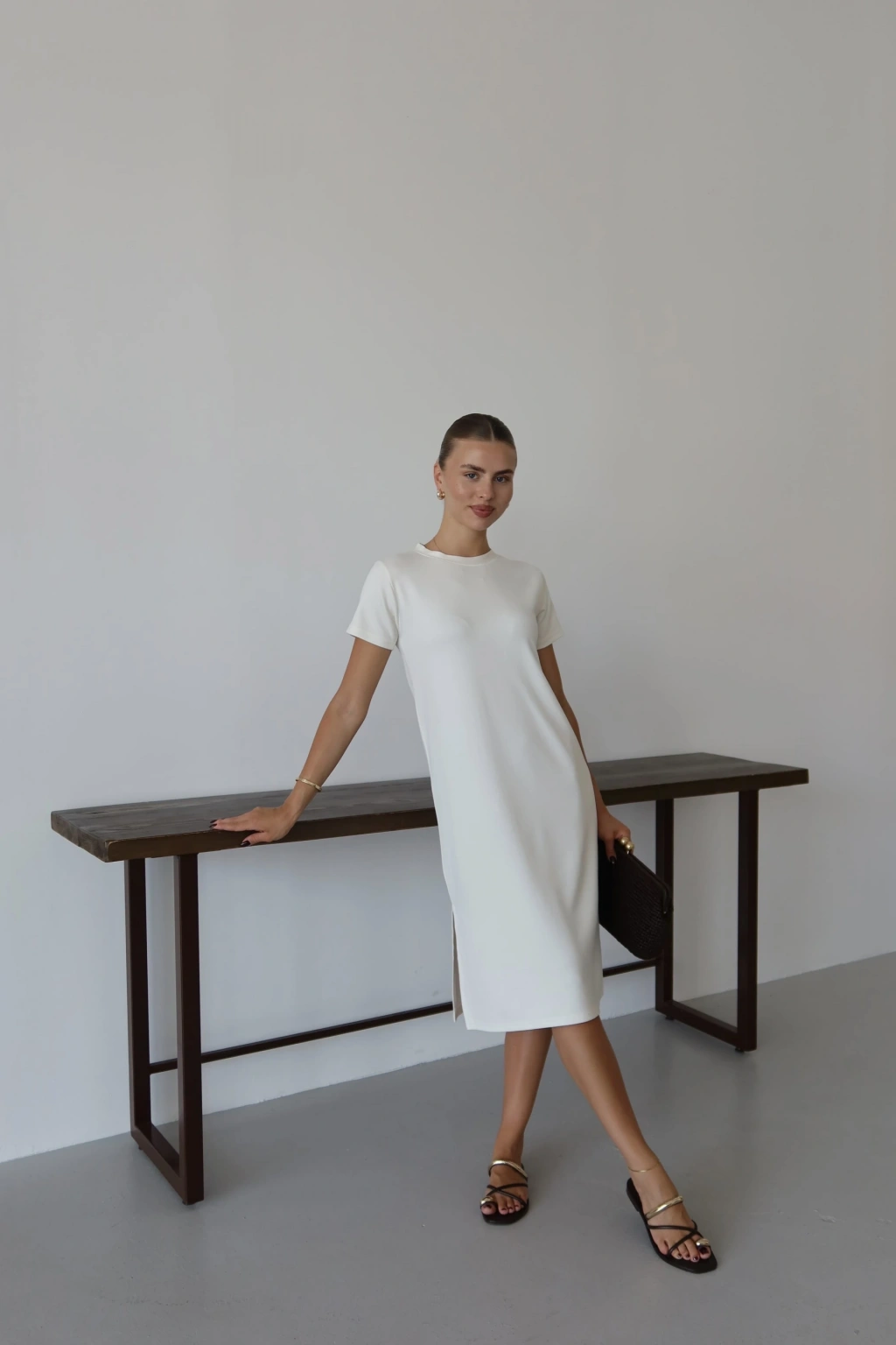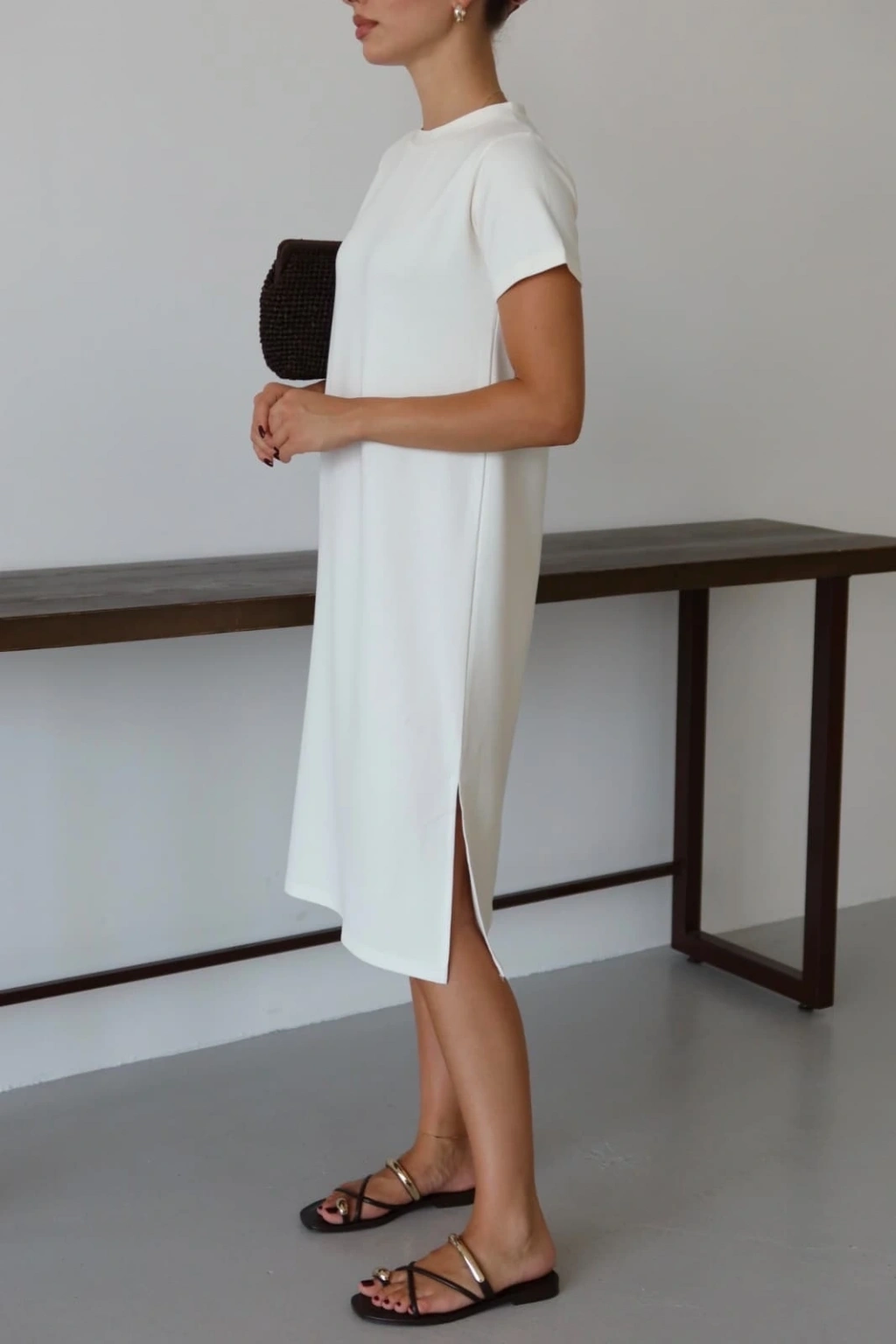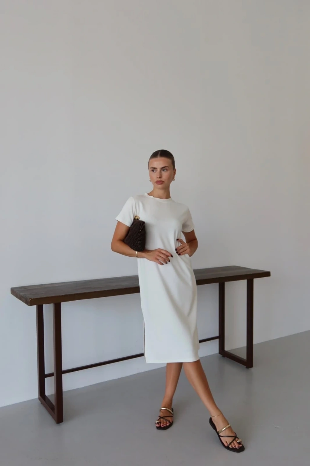 Modal yırtmaçlı elbise beyaz pt