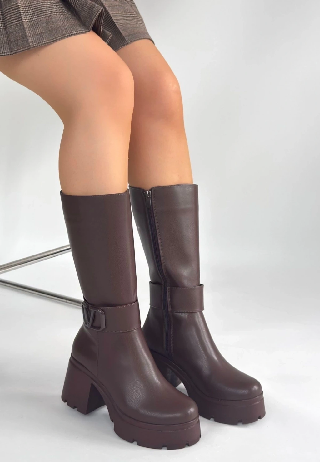 Moki Kahverengi Cilt Topuklu Çizme